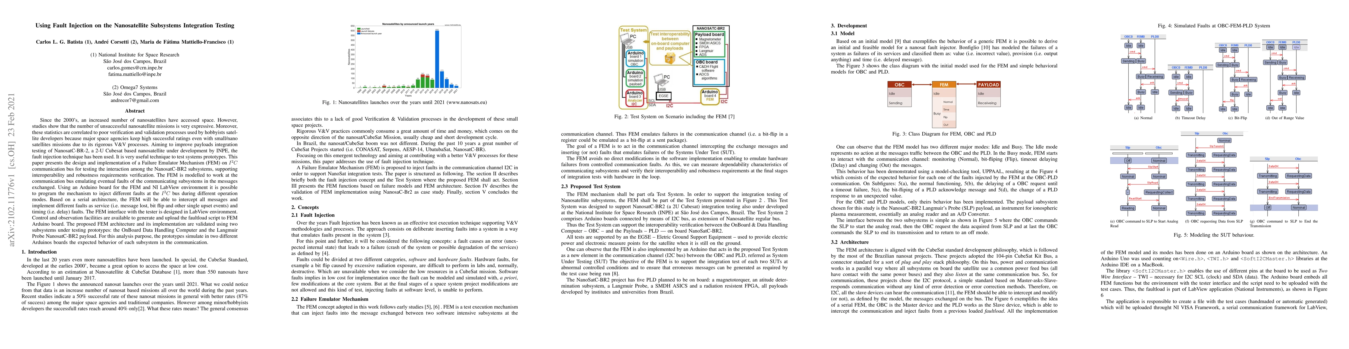 The paper presents a Failure Emulator Mechanism (FEM) designed for nanosatellite subsystems integration testing, which emulates faults in the communication channel to verify interoperability and robustness requirements.