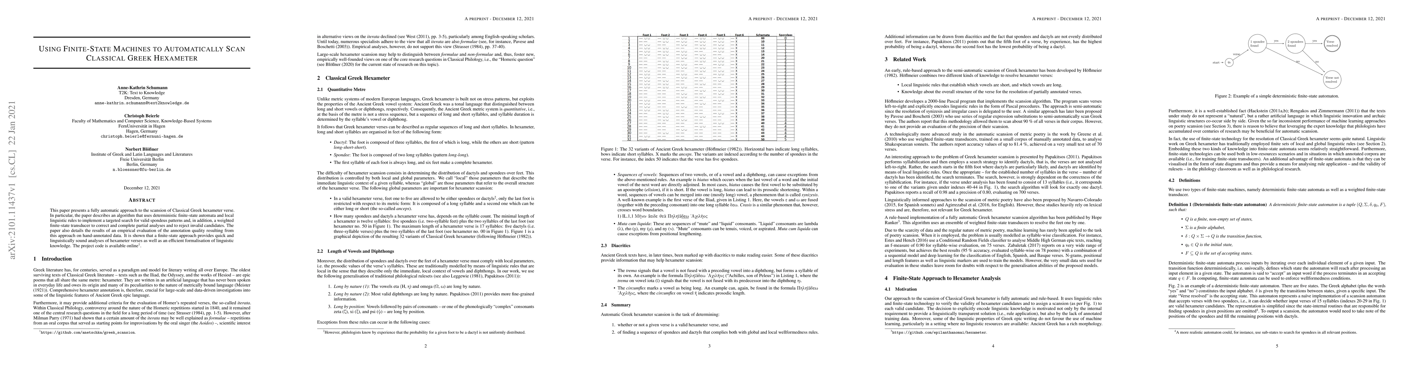 This paper presents a fully automatic approach to the scansion of Classical Greek hexameter verse. In particular, the paper describes an algorithm that uses deterministic finite-state automata and local linguistic rules to implement a targeted search for valid spondeus patterns and, in addition, a weighted finite-state transducer to correct and complete partial analyses and to reject invalid candidates. The paper also details the results of an empirical evaluation of the annotation quality resulting from this approach on hand-annotated data. It is shown that a finite-state approach provides quick and linguistically sound analyses of hexameter verses as well as an efficient formalisation of linguistic knowledge. The project code is available (see https://github.com/anetschka/greek_scansion).