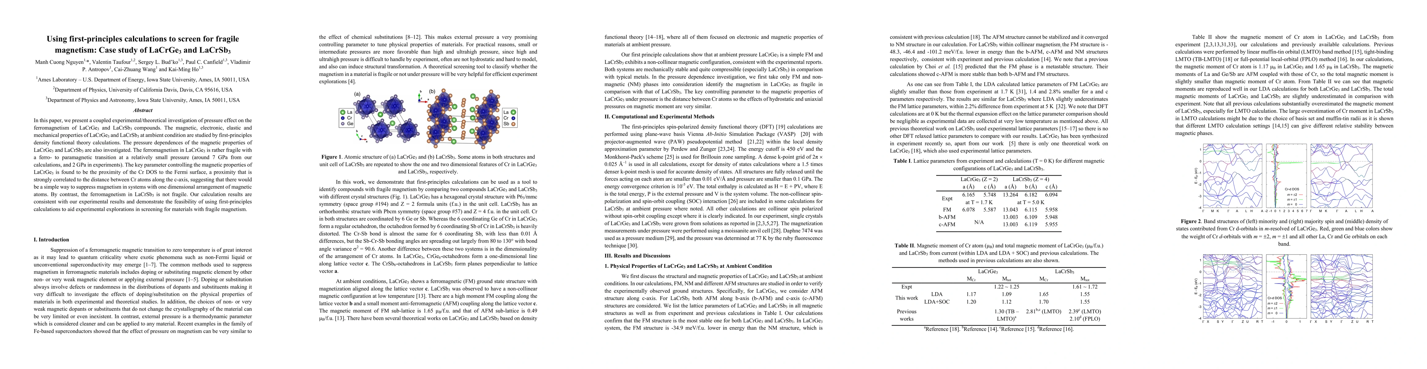 This paper combines theoretical and experimental methods to investigate the pressure-induced ferromagnetism in LaCrGe3 and LaCrSb3. First-principles calculations reveal that LaCrGe3 exhibits fragile ferromagnetism, transitioning to paramagnetic at low pressure, while LaCrSb3 remains ferromagnetic. The study highlights the role of Cr atomic proximity in controlling magnetic properties.