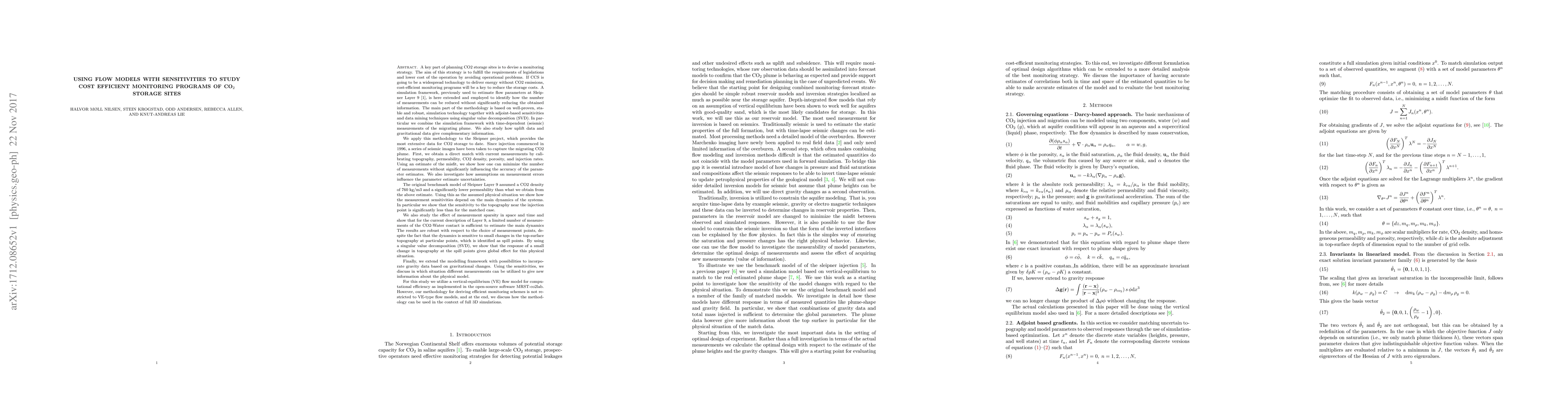 This research presents a methodology using flow models and sensitivities to optimize cost-efficient monitoring programs for CO2 storage sites, demonstrated with the Sleipner project data. It combines simulation technology, adjoint-based sensitivities, and data mining techniques to identify the minimum number of measurements needed for effective monitoring, aiming to lower storage costs and facilitate widespread CO2 capture and storage technology adoption.