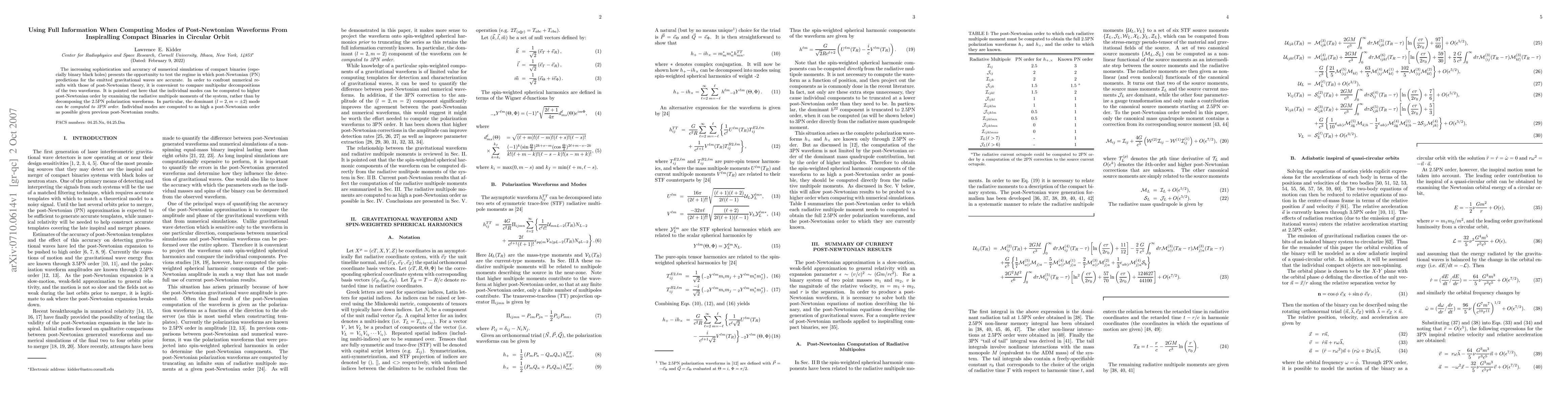 Researchers computed individual modes of post-Newtonian waveforms to high post-Newtonian order using radiative multipole moments, enabling a more accurate comparison with numerical simulations.