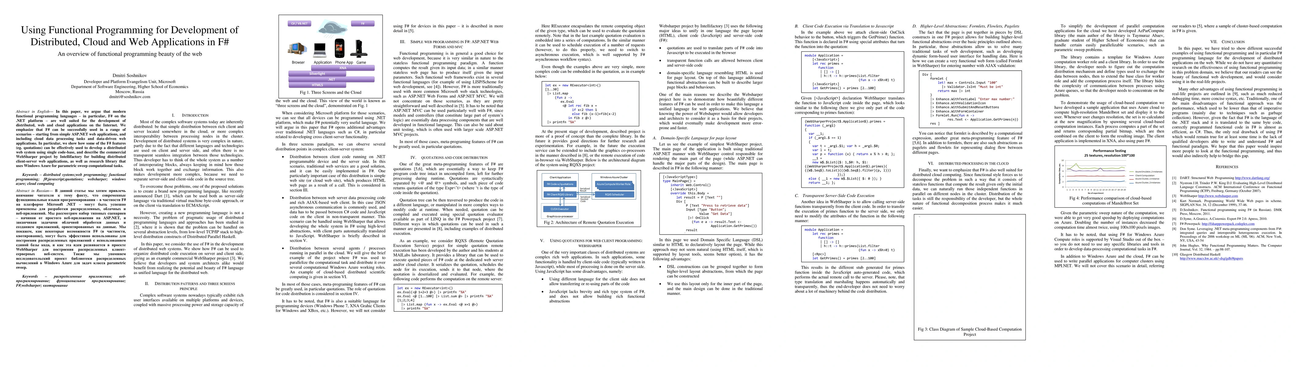 This paper argues that F# is well suited for developing distributed, web, and cloud applications, showcasing its use in various scenarios from simple web apps to complex cloud data processing. It highlights F# features like quotations and the WebSharper project for building distributed web systems.