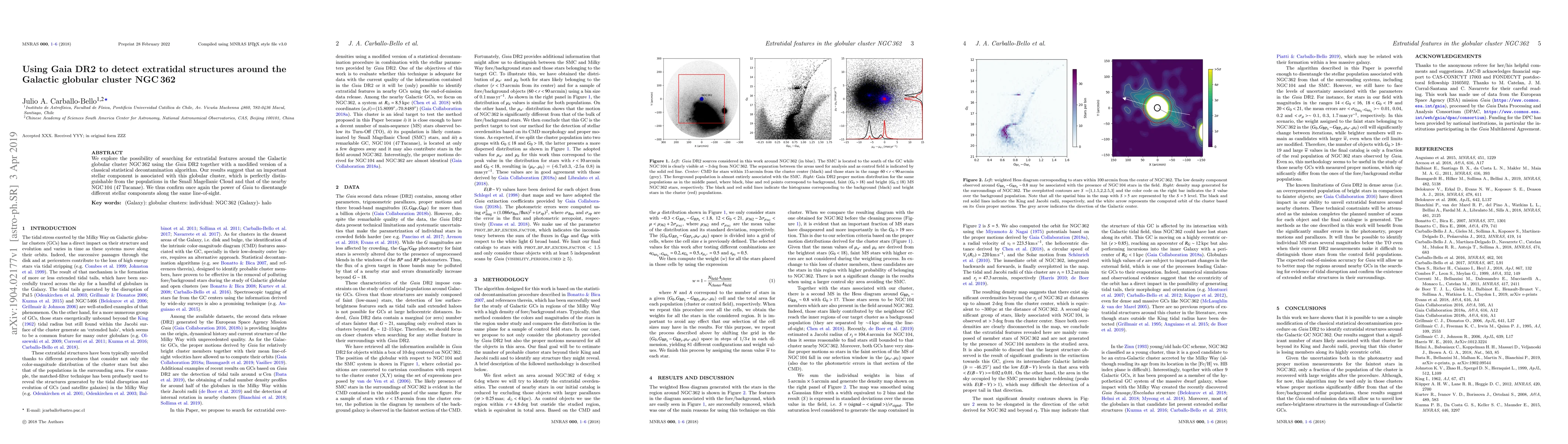 This work introduces an innovative approach to disentangle stellar populations using Gaia DR2 data, providing insights into extratidal structures around NGC362.