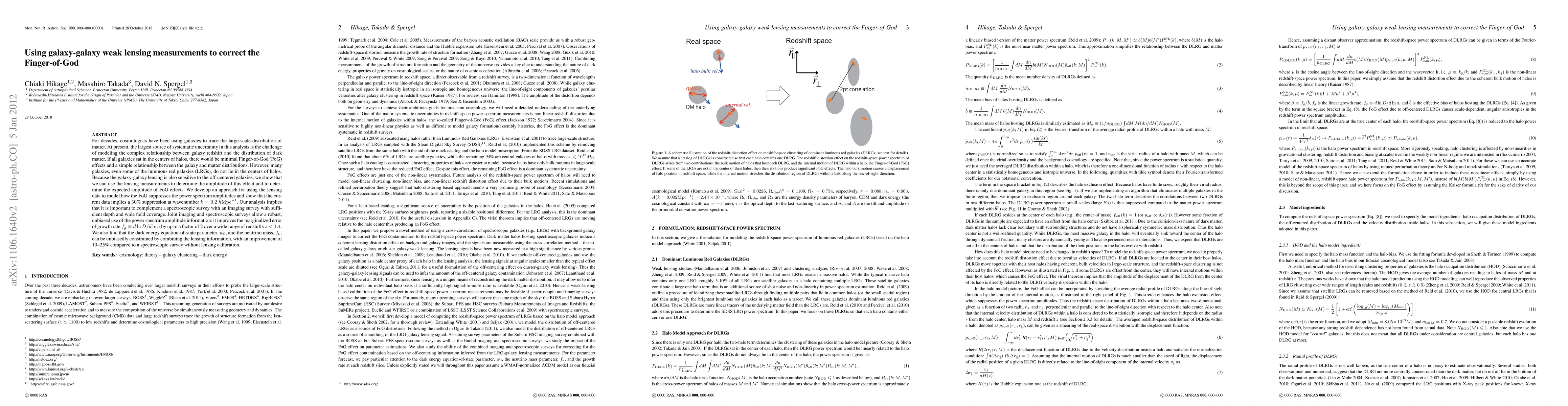Research uses galaxy-galaxy weak lensing to correct for the Finger-of-God effect in cosmology, improving measurements of dark energy and neutrino mass with joint imaging and spectroscopic surveys.