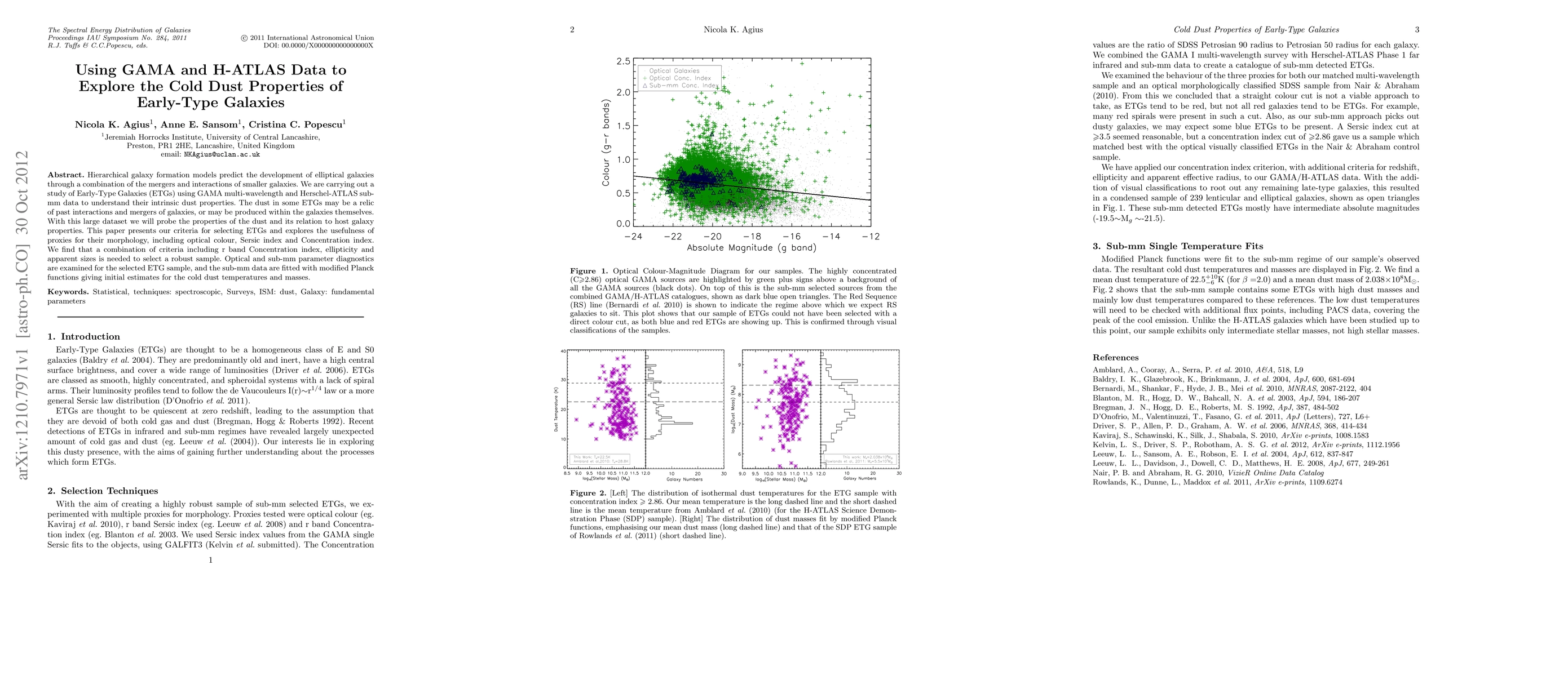 Hierarchical galaxy formation models predict the development of elliptical galaxies through a combination of the mergers and interactions of smaller galaxies. We are carrying out a study of Early-Type Galaxies (ETGs) using GAMA multi-wavelength and Herschel-ATLAS sub- mm data to understand their intrinsic dust properties. The dust in some ETGs may be a relic of past interactions and mergers of galaxies, or may be produced within the galaxies themselves. With this large dataset we will probe the properties of the dust and its relation to host galaxy properties. This paper presents our criteria for selecting ETGs and explores the usefulness of proxies for their morphology, including optical colour, Sersic index and Concentration index. We find that a combination of criteria including r band Concentration index, ellipticity and apparent sizes is needed to select a robust sample. Optical and sub-mm parameter diagnostics are examined for the selected ETG sample, and the sub-mm data are fitted with modified Planck functions giving initial estimates for the cold dust temperatures and masses.