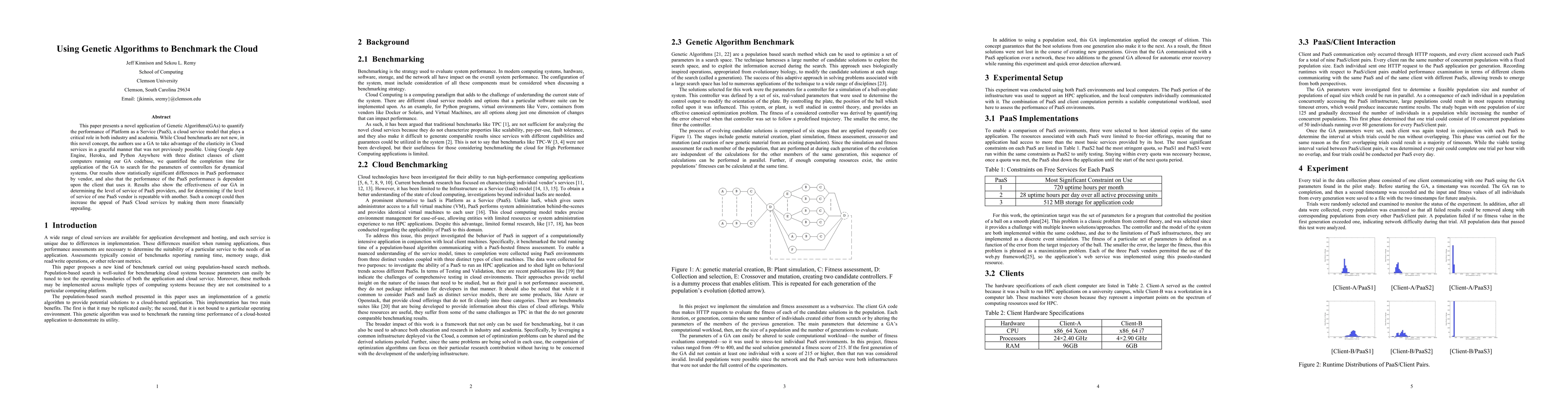 Researchers used Genetic Algorithms to benchmark Platform as a Service (PaaS) cloud services, finding statistically significant differences in performance by vendor and client type.