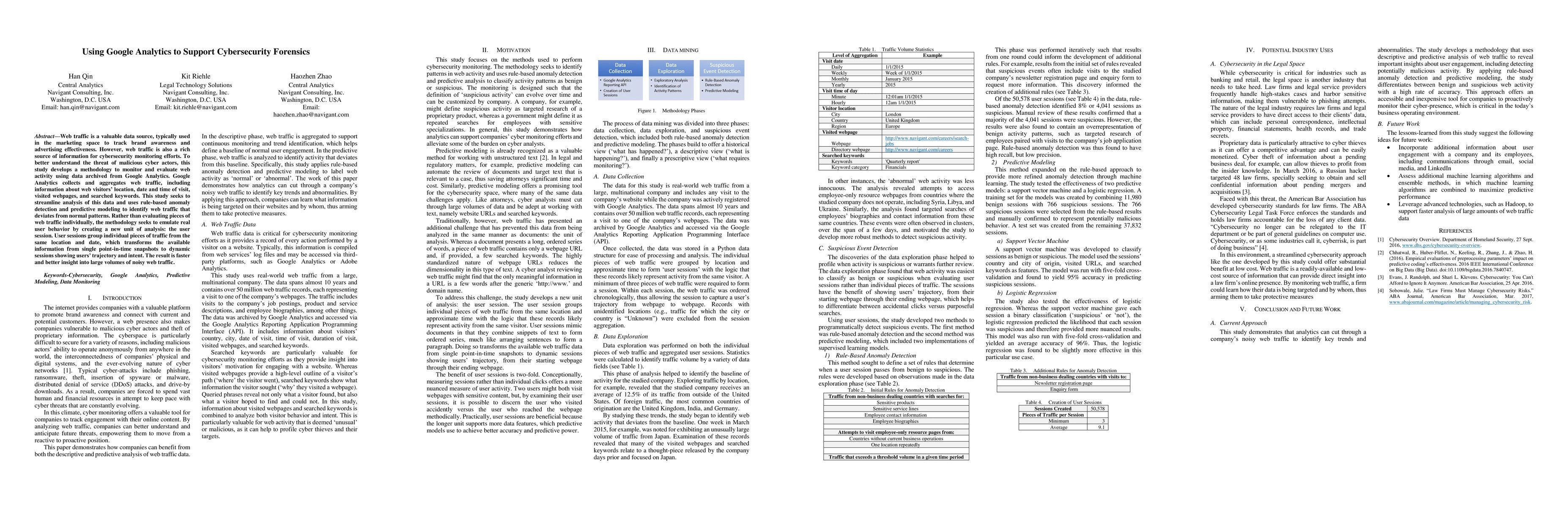 Web traffic is a valuable data source, typically used in the marketing space to track brand awareness and advertising effectiveness. However, web traffic is also a rich source of information for cybersecurity monitoring efforts. To better understand the threat of malicious cyber actors, this study develops a methodology to monitor and evaluate web activity using data archived from Google Analytics. Google Analytics collects and aggregates web traffic, including information about web visitors' location, date and time of visit, visited webpages, and searched keywords. This study seeks to streamline analysis of this data and uses rule-based anomaly detection and predictive modeling to identify web traffic that deviates from normal patterns. Rather than evaluating pieces of web traffic individually, the methodology seeks to emulate real user behavior by creating a new unit of analysis: the user session. User sessions group individual pieces of traffic from the same location and date, which transforms the available information from single point-in-time snapshots to dynamic sessions showing users' trajectory and intent. The result is faster and better insight into large volumes of noisy web traffic.