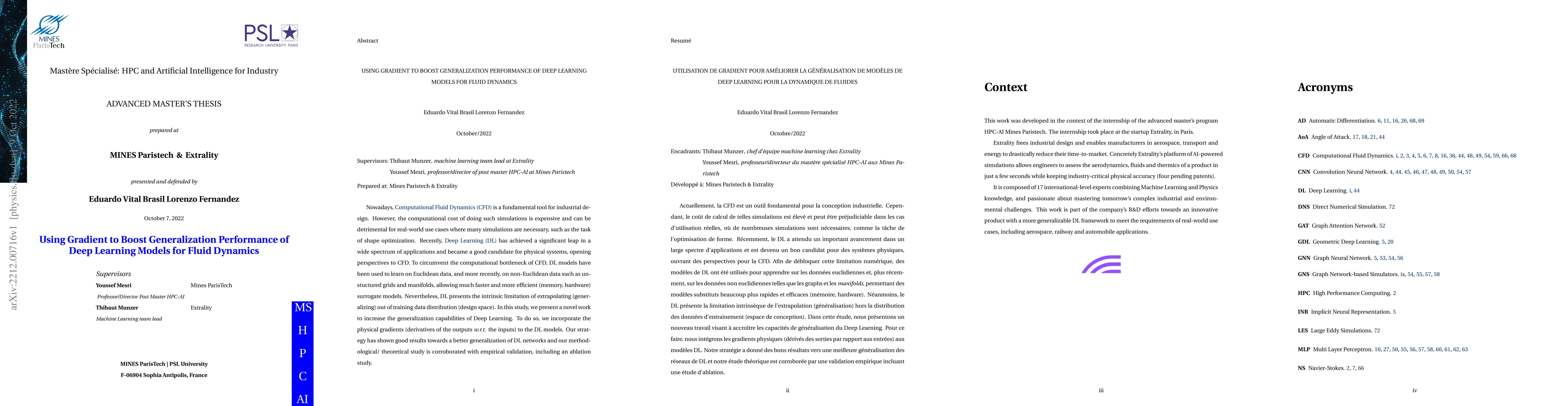 This paper proposes a method to enhance the generalization performance of Deep Learning models for Computational Fluid Dynamics by incorporating physical gradients into the training process. Empirical validation and an ablation study confirm the effectiveness of this approach in improving the models' ability to generalize beyond the training data.