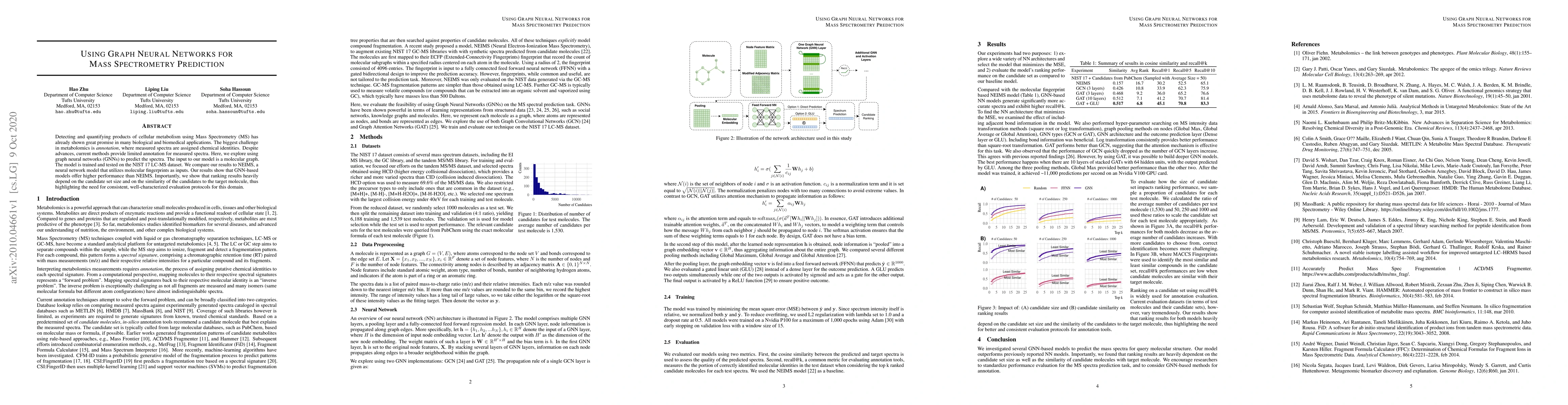 This paper investigates the use of graph neural networks (GNNs) for predicting mass spectrometry (MS) data, showing improved performance over existing neural network models like NEIMS. The study emphasizes the importance of candidate set size and similarity for accurate ranking, advocating for standardized evaluation protocols in metabolomics.