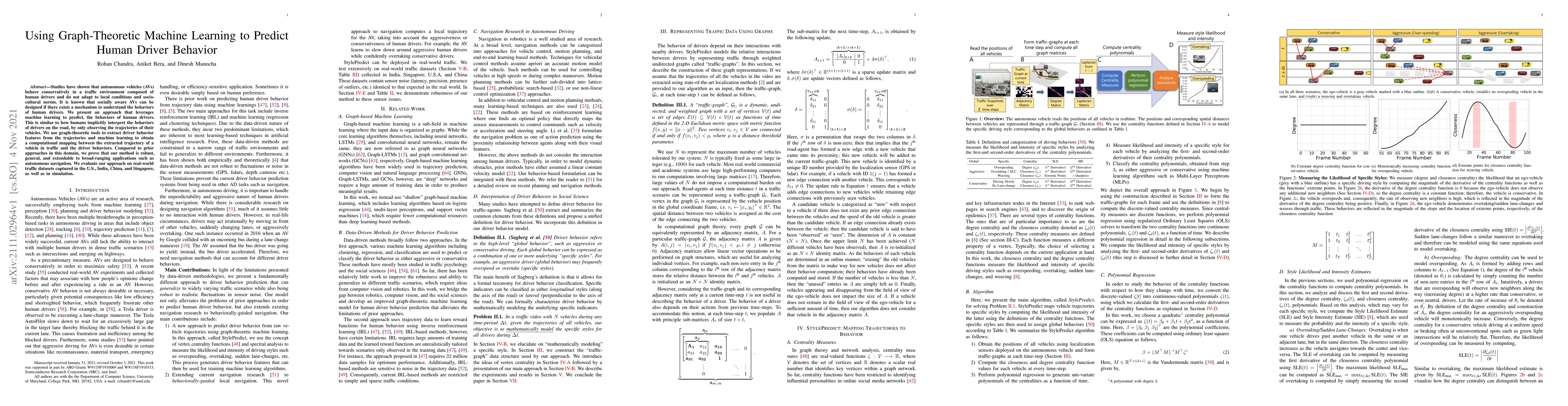 This paper proposes a graph-theoretic machine learning method to predict human driver behaviors by analyzing vehicle trajectories. The approach aims to enable socially aware autonomous vehicles by extracting features from traffic data and mapping them to driver behaviors, demonstrating robustness and generalizability across diverse datasets.