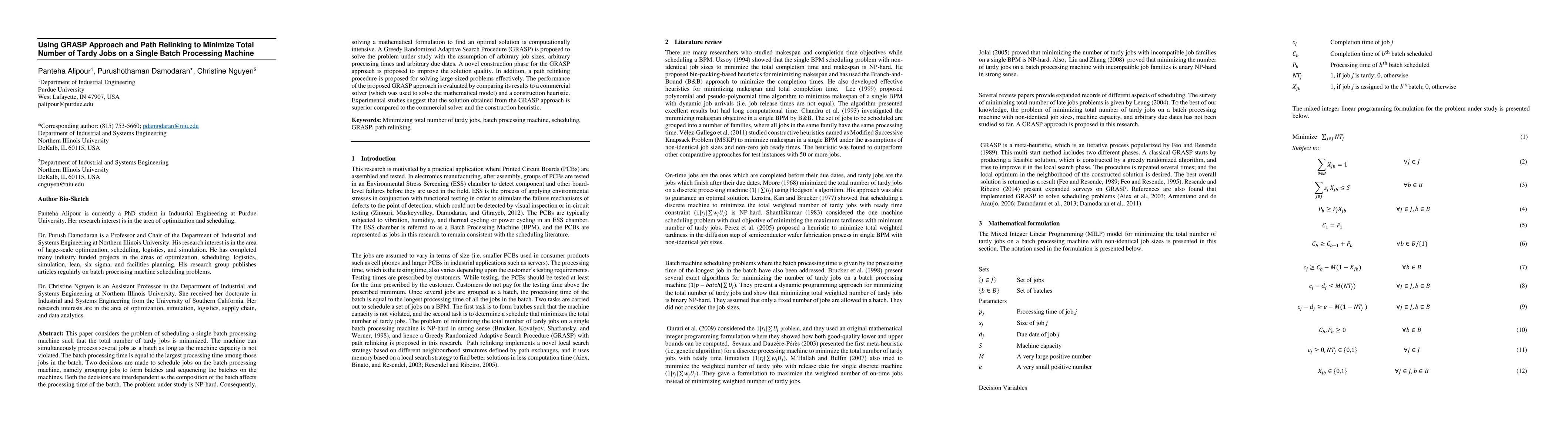 This paper proposes a Greedy Randomized Adaptive Search Procedure (GRASP) combined with path relinking to minimize tardy jobs in batch processing scheduling on a single machine. Experimental results show that the proposed method outperforms both a commercial solver and a construction heuristic.