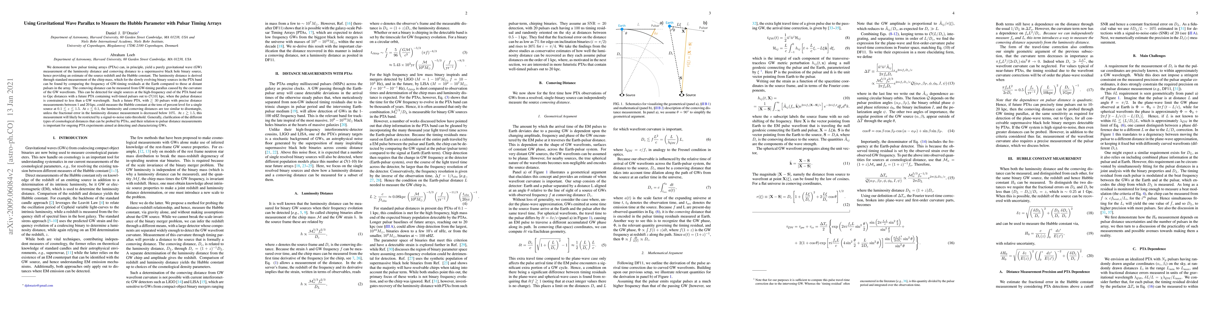 This paper explores how pulsar timing arrays (PTAs) can measure the Hubble constant using gravitational wave parallax, deriving luminosity and comoving distances from supermassive black hole binaries. Future PTAs with precise pulsar distance measurements could achieve a tens of percent accuracy in the Hubble constant for sources at redshifts between 0.1 and 1.5.