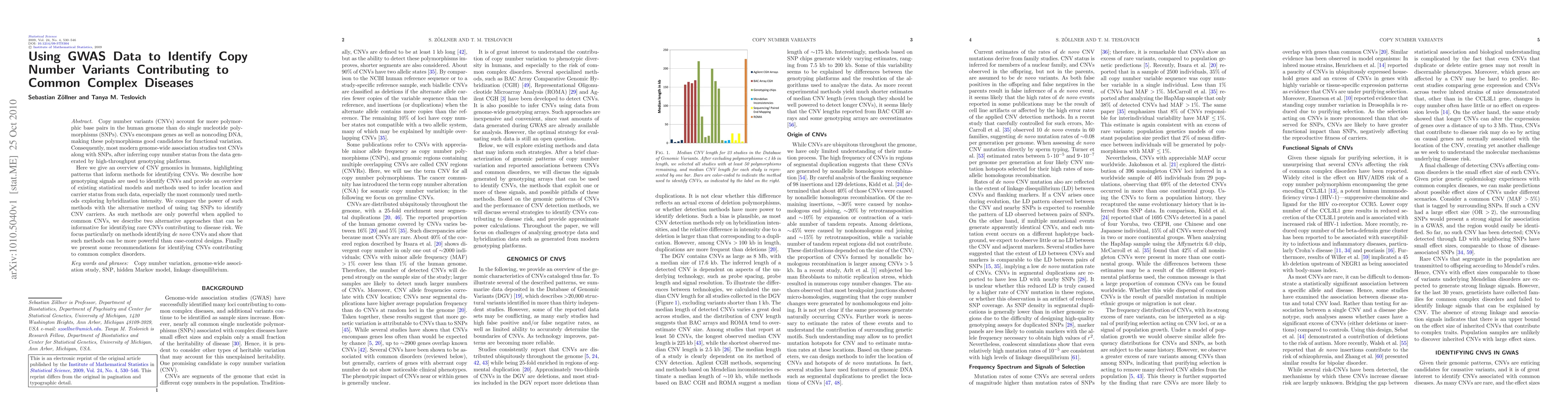 Copy number variants (CNVs) account for more polymorphic base pairs in the human genome than do single nucleotide polymorphisms (SNPs). CNVs encompass genes as well as noncoding DNA, making these polymorphisms good candidates for functional variation. Consequently, most modern genome-wide association studies test CNVs along with SNPs, after inferring copy number status from the data generated by high-throughput genotyping platforms. Here we give an overview of CNV genomics in humans, highlighting patterns that inform methods for identifying CNVs. We describe how genotyping signals are used to identify CNVs and provide an overview of existing statistical models and methods used to infer location and carrier status from such data, especially the most commonly used methods exploring hybridization intensity. We compare the power of such methods with the alternative method of using tag SNPs to identify CNV carriers. As such methods are only powerful when applied to common CNVs, we describe two alternative approaches that can be informative for identifying rare CNVs contributing to disease risk. We focus particularly on methods identifying de novo CNVs and show that such methods can be more powerful than case-control designs. Finally we present some recommendations for identifying CNVs contributing to common complex disorders.