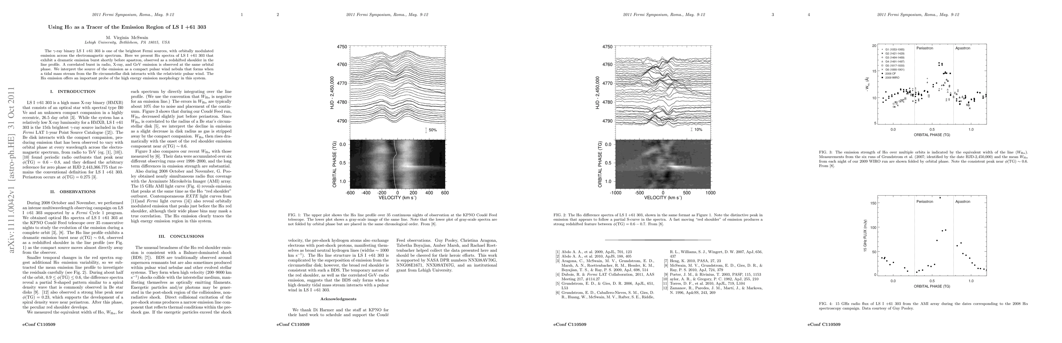 The gamma-ray binary LS I +61 303 is one of the brightest Fermi sources, with orbitally modulated emission across the electromagnetic spectrum. Here we present H-alpha spectra of LS I +61 303 that exhibit a dramatic emission burst shortly before apastron, observed as a redshifted shoulder in the line profile. A correlated burst in radio, X-ray, and GeV emission is observed at the same orbital phase. We interpret the source of the emission as a compact pulsar wind nebula that forms when a tidal mass stream from the Be circumstellar disk interacts with the relativistic pulsar wind. The H-alpha emission offers an important probe of the high energy emission morphology in this system.