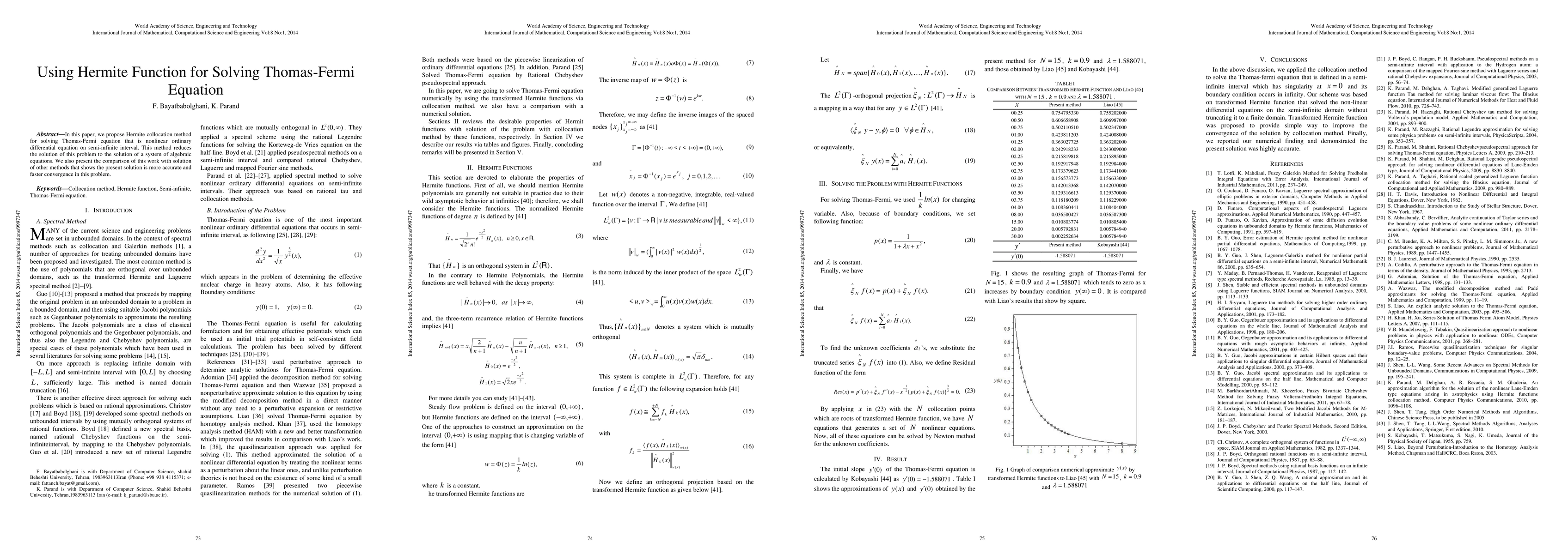 This paper introduces a Hermite collocation method for solving the Thomas-Fermi equation, transforming it into a system of algebraic equations. Comparative analysis demonstrates that this approach is more accurate and converges faster than other methods.