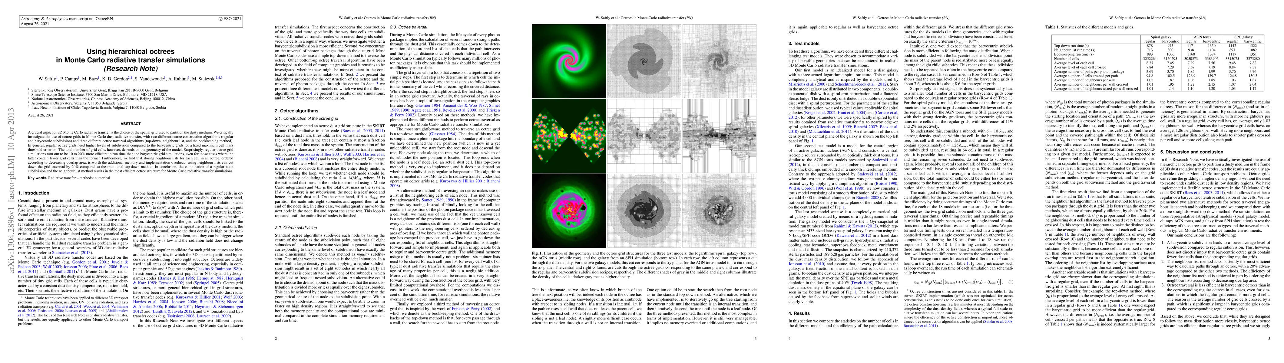 This paper evaluates the efficiency of hierarchical octree grids in Monte Carlo radiative transfer simulations, finding that regular octree grids with neighbour list traversal methods outperform barycentric grids despite requiring more subdivisions. The neighbour list approach reduces grid traversal time by 20%.