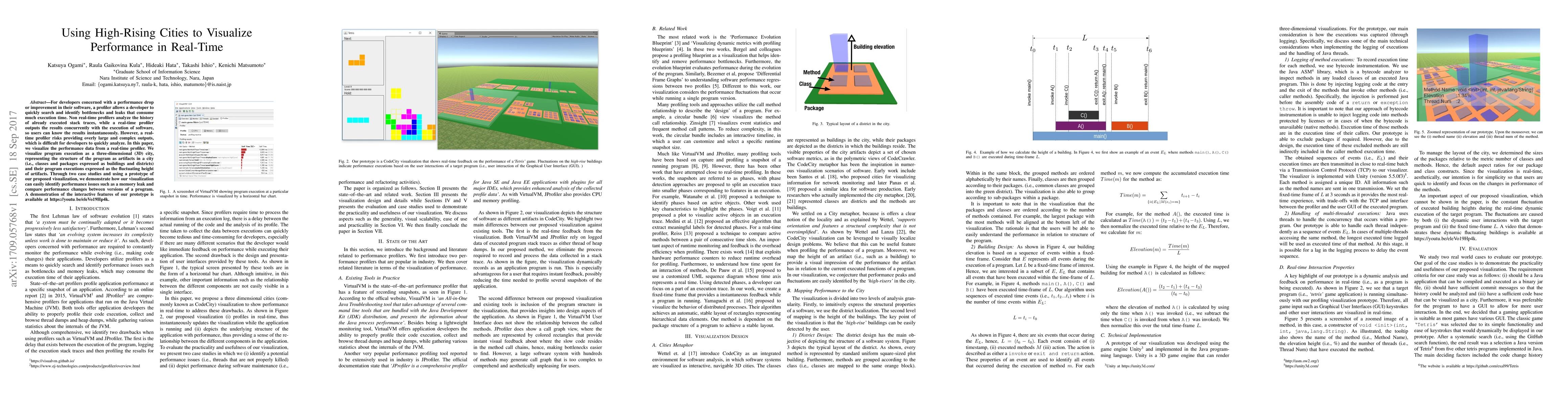 This paper proposes a 3D city visualization to represent and analyze real-time performance data from software profilers, allowing developers to quickly identify bottlenecks and memory leaks. The prototype effectively visualizes program structure and execution, facilitating performance comparison across different versions.