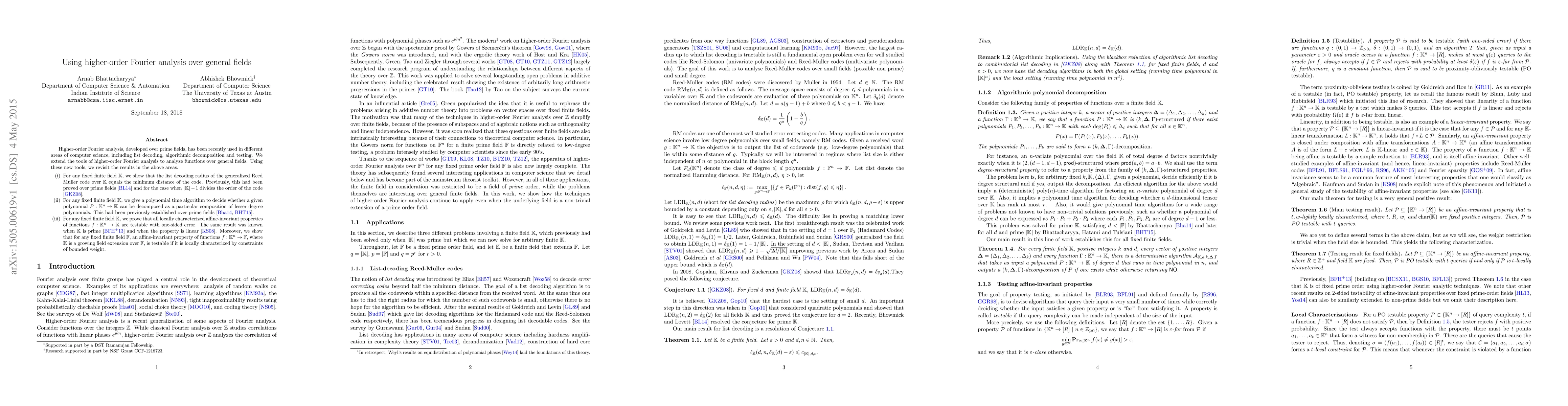 This paper is notable for generalizing higher-order Fourier analysis to arbitrary finite fields, which was previously limited to prime fields, and for providing new algorithms and tests applicable in this broader context.