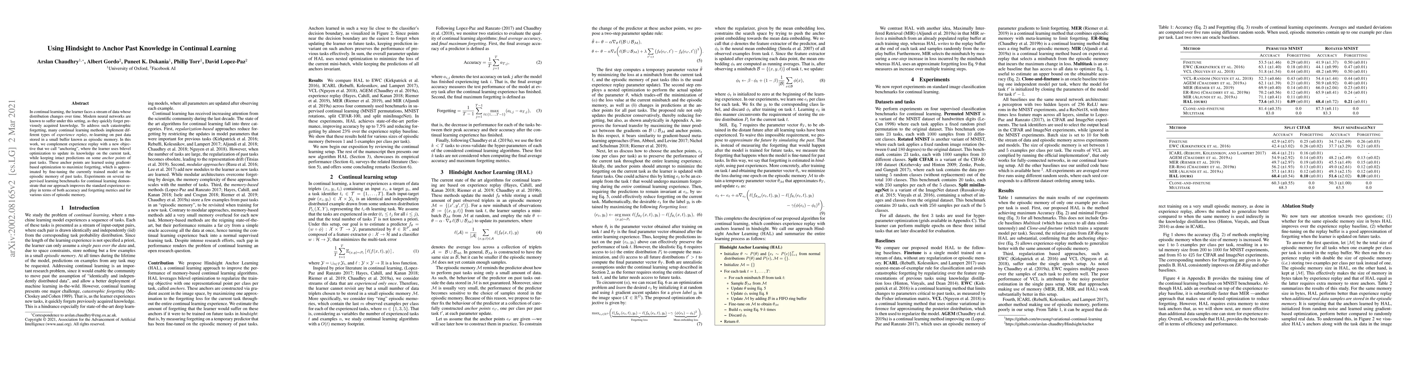 This paper proposes a novel continual learning method that combines experience replay with a new anchoring objective to mitigate catastrophic forgetting. By using bilevel optimization to maintain predictions on anchor points from past tasks, the method enhances both accuracy and reduces forgetting compared to standard experience replay.