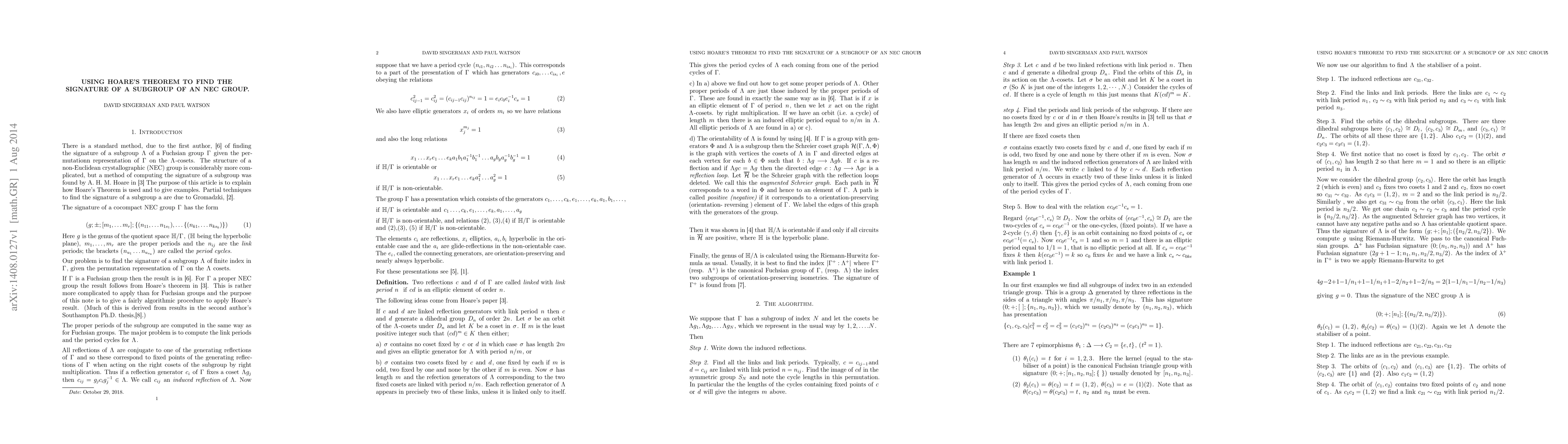 Researchers used Hoare's Theorem to find a subgroup signature in NEC groups, providing a method for analyzing these groups.