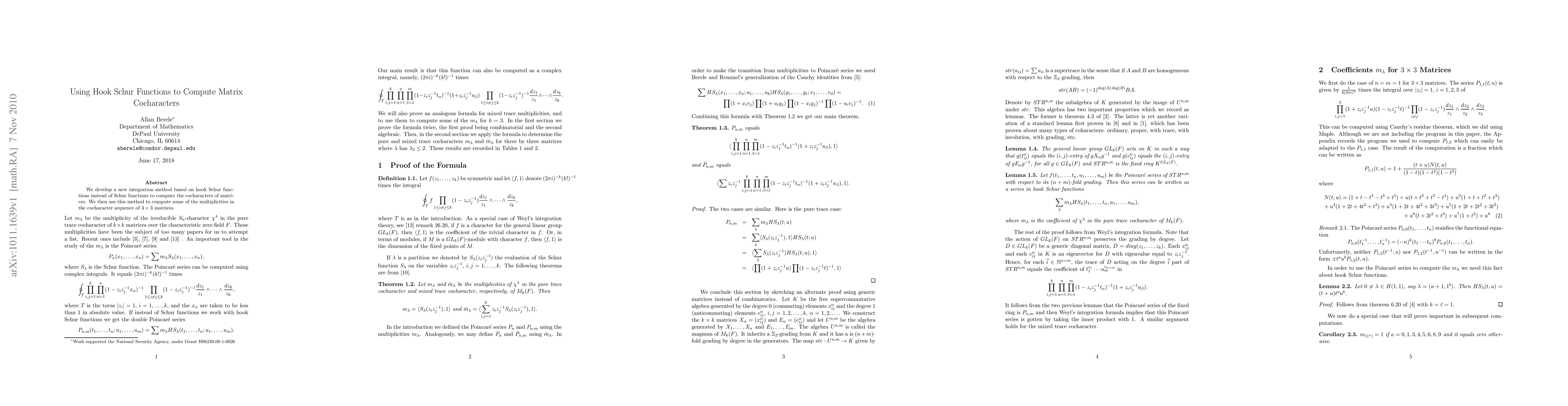 Researchers used hook Schur functions to compute trace cocharacters of 3x3 matrices in a one-by-two hook structure, providing new insights into matrix computations.