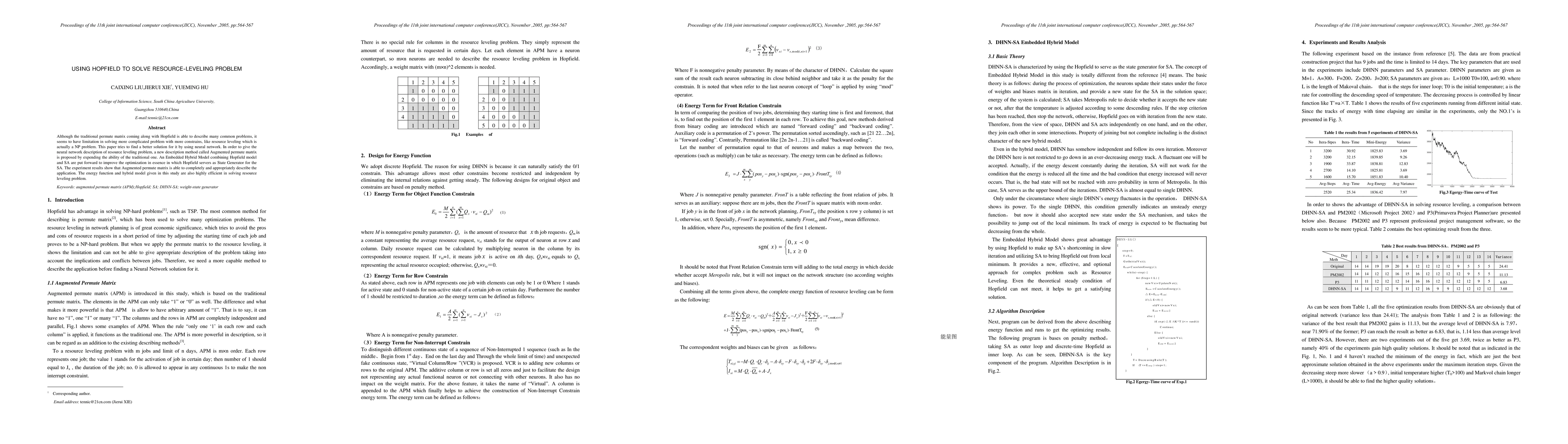 This paper proposes an Augmented permute matrix to enhance Hopfield networks for solving resource-leveling problems, introducing an Embedded Hybrid Model combining Hopfield and Simulated Annealing for improved optimization. Experimental results demonstrate the effectiveness of the new approach in addressing complex resource-leveling challenges.