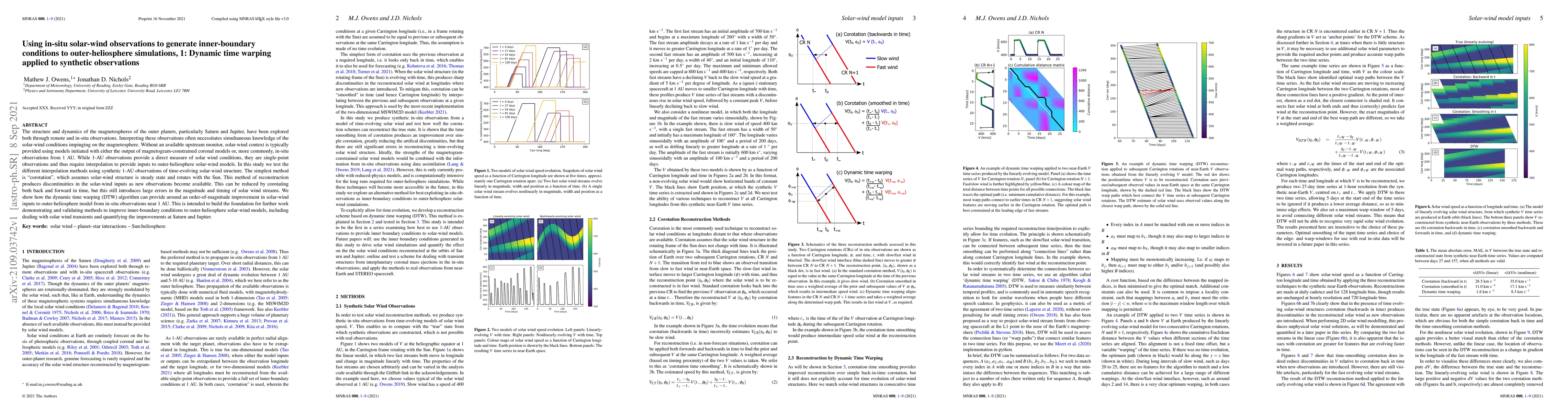 The structure and dynamics of the magnetospheres of the outer planets, particularly Saturn and Jupiter, have been explored both through remote and in-situ observations. Interpreting these observations often necessitates simultaneous knowledge of the solar-wind conditions impinging on the magnetosphere. Without an available upstream monitor, solar-wind context is typically provided using models initiated with either the output of magnetogram-constrained coronal models or, more commonly, in-situ observations from 1 AU. While 1-AU observations provide a direct measure of solar wind conditions, they are single-point observations and thus require interpolation to provide inputs to outer-heliosphere solar-wind models. In this study we test the different interpolation methods using synthetic 1-AU observations of time-evolving solar-wind structure. The simplest method is "corotation", which assumes solar-wind structure is steady state and rotates with the Sun. This method of reconstruction produces discontinuities in the solar-wind inputs as new observations become available. This can be reduced by corotating both back and forward in time, but this still introduces large errors in the magnitude and timing of solar wind streams. We show how the dynamic time warping (DTW) algorithm can provide around an order-of-magnitude improvement in solar-wind inputs to outer-heliosphere model from in-situ observations near 1 AU. This is intended to build the foundation for further work demonstrating and validating methods to improve inner-boundary conditions to outer-heliosphere solar-wind models, including dealing with solar wind transients and quantifying the improvements at Saturn and Jupiter.