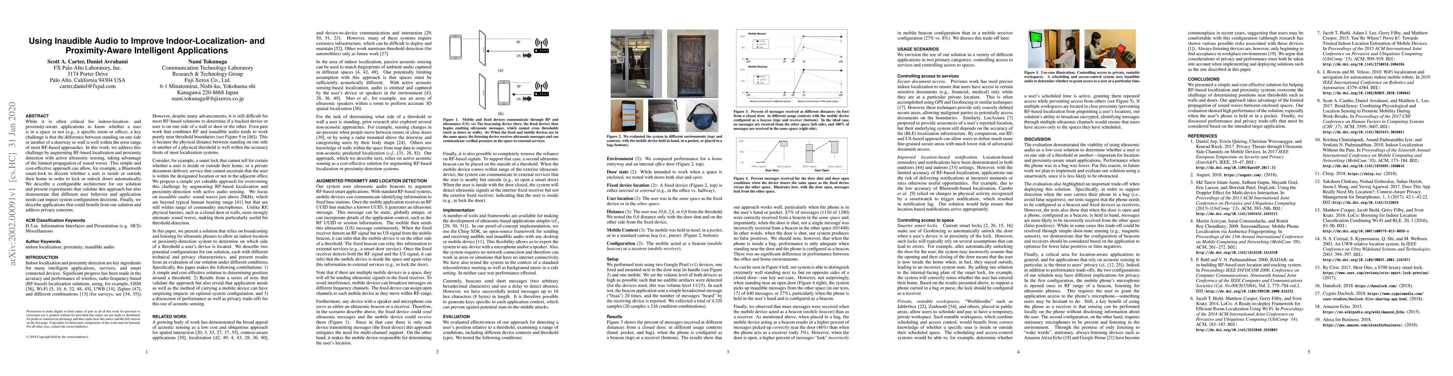 This paper proposes using inaudible ultrasonic sensing to enhance indoor localization and proximity detection, addressing the limitations of RF-based methods. The approach enables smart devices to accurately determine user presence within a space, with applications like automated door locks, while also considering privacy implications.