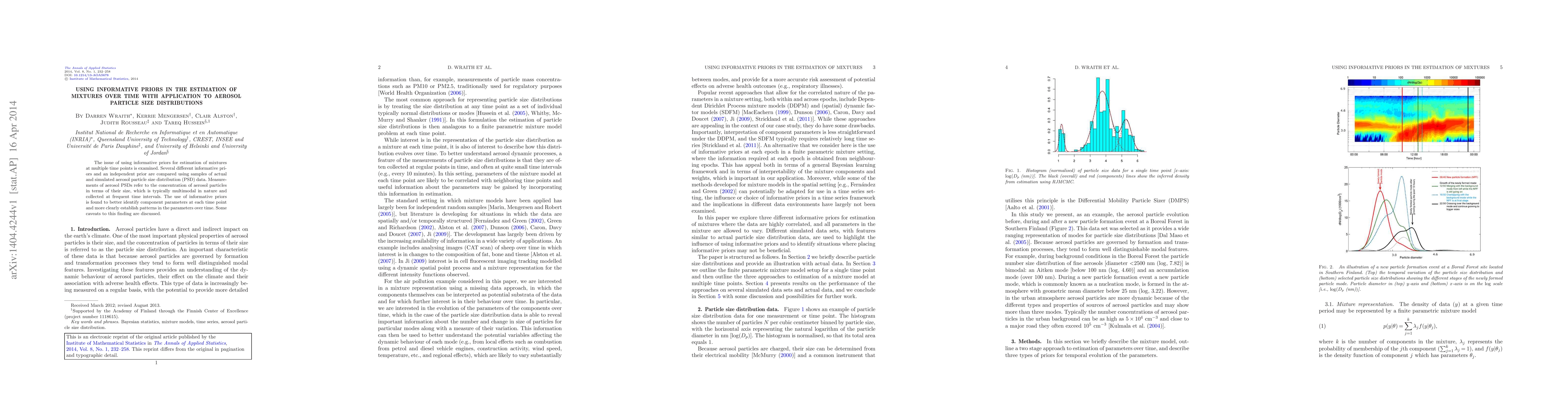 This paper investigates the use of informative priors in estimating mixtures over time, particularly for aerosol particle size distributions. It finds that informative priors better identify component parameters and reveal patterns over time compared to independent priors, though some caveats are noted.