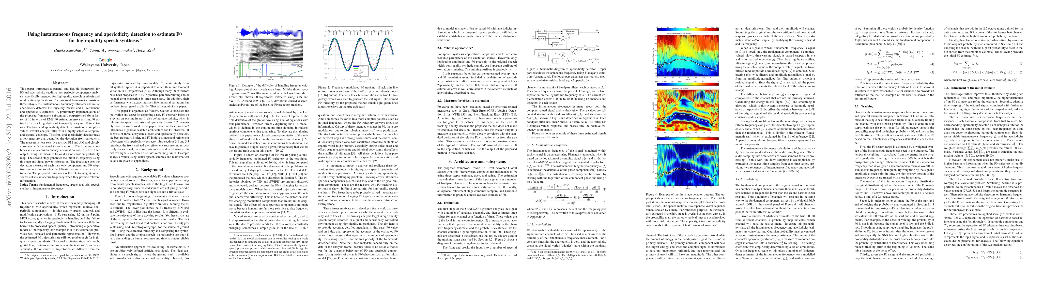This paper proposes a novel framework for F0 and aperiodicity analysis to enhance high-quality speech synthesis, featuring an instantaneous frequency estimator, F0 tracker, and aperiodicity extractor. Preliminary results show a tenfold improvement in F0 estimation accuracy compared to existing methods.