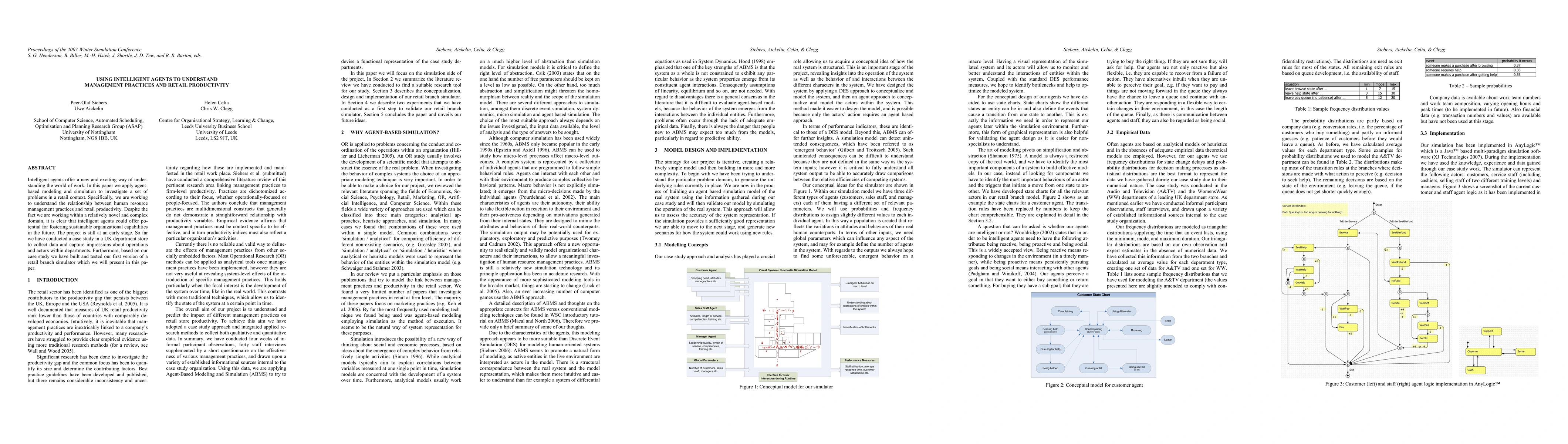 This paper explores the application of intelligent agents and agent-based modeling to investigate the relationship between management practices and retail productivity. Initial results from a UK department store case study and a newly developed retail branch simulator suggest promising potential for enhancing organizational capabilities.