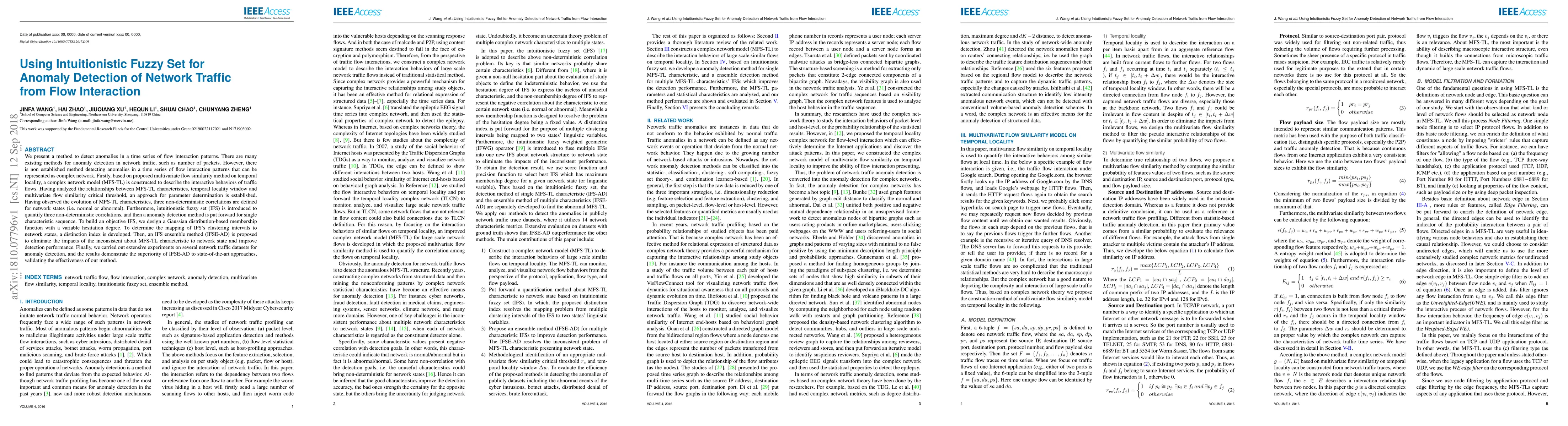 This paper proposes an anomaly detection method for network traffic using intuitionistic fuzzy sets (IFS) to analyze flow interaction patterns. It constructs a complex network model based on multivariate flow similarity and uses IFS to quantify non-deterministic correlations, leading to an ensemble method (IFSE-AD) that outperforms existing techniques in detecting anomalies.