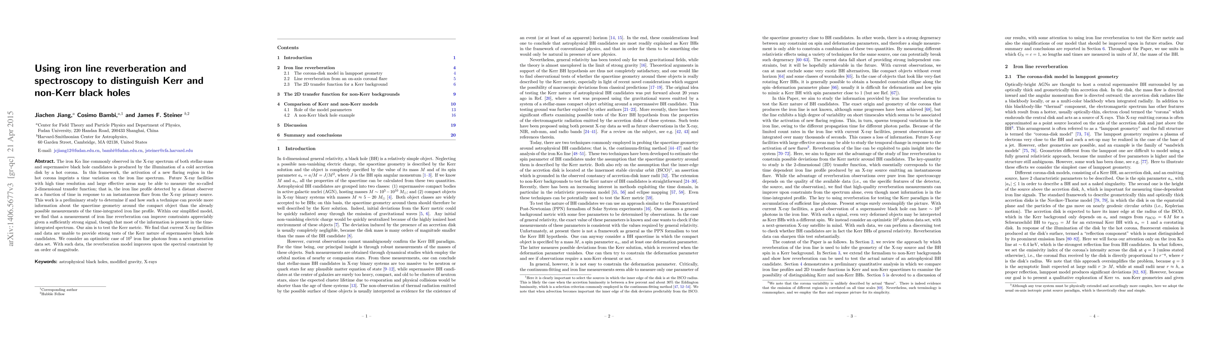 This paper explores the potential of using iron line reverberation and spectroscopy to distinguish between Kerr and non-Kerr black holes. It finds that while current X-ray facilities lack the capability for strong tests, future high-resolution X-ray data could significantly improve constraints on the spacetime geometry around black holes, particularly with a large number of detected iron line photons.