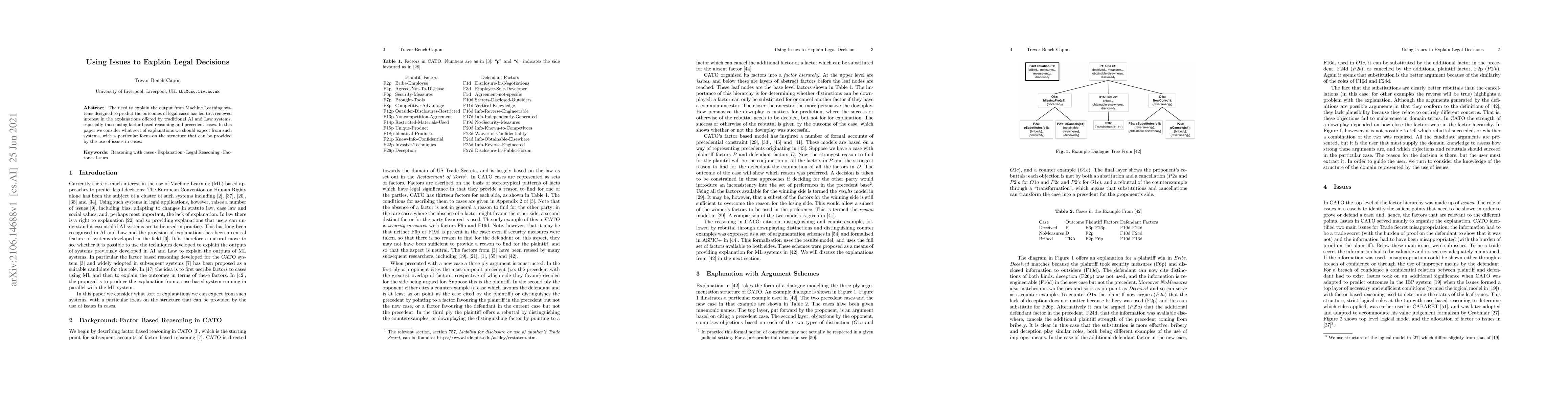 The need to explain the output from Machine Learning systems designed to predict the outcomes of legal cases has led to a renewed interest in the explanations offered by traditional AI and Law systems, especially those using factor based reasoning and precedent cases. In this paper we consider what sort of explanations we should expect from such systems, with a particular focus on the structure that can be provided by the use of issues in cases.