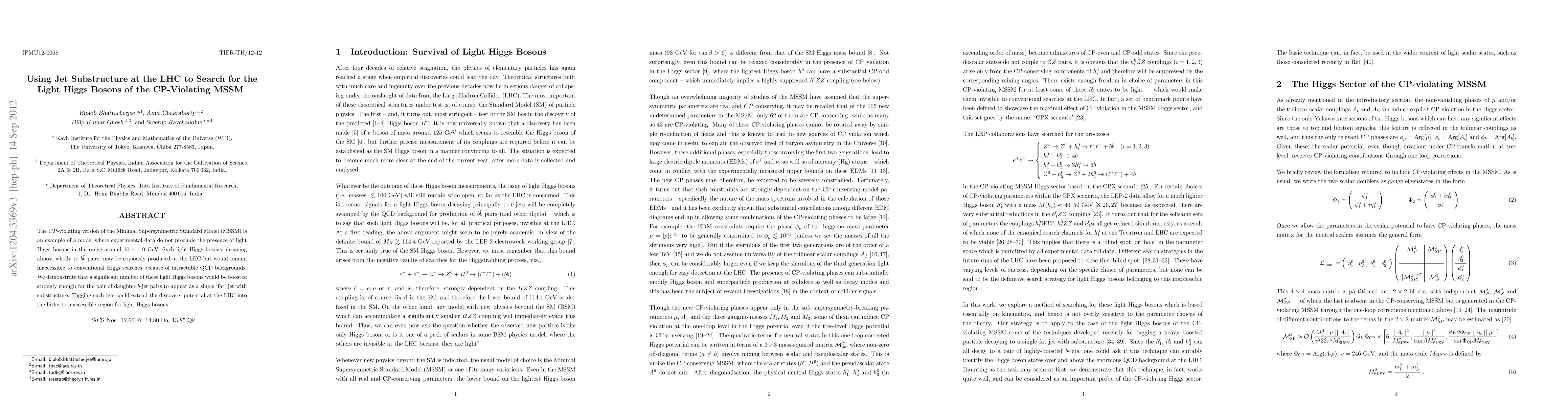 This paper explores the use of jet substructure at the LHC to detect light Higgs bosons in the CP-violating MSSM, which are typically beyond the reach of conventional searches due to QCD backgrounds. The method involves identifying boosted Higgs bosons decaying into b-jet pairs that manifest as a single "fat" jet, thus extending the potential for discovering these elusive particles.