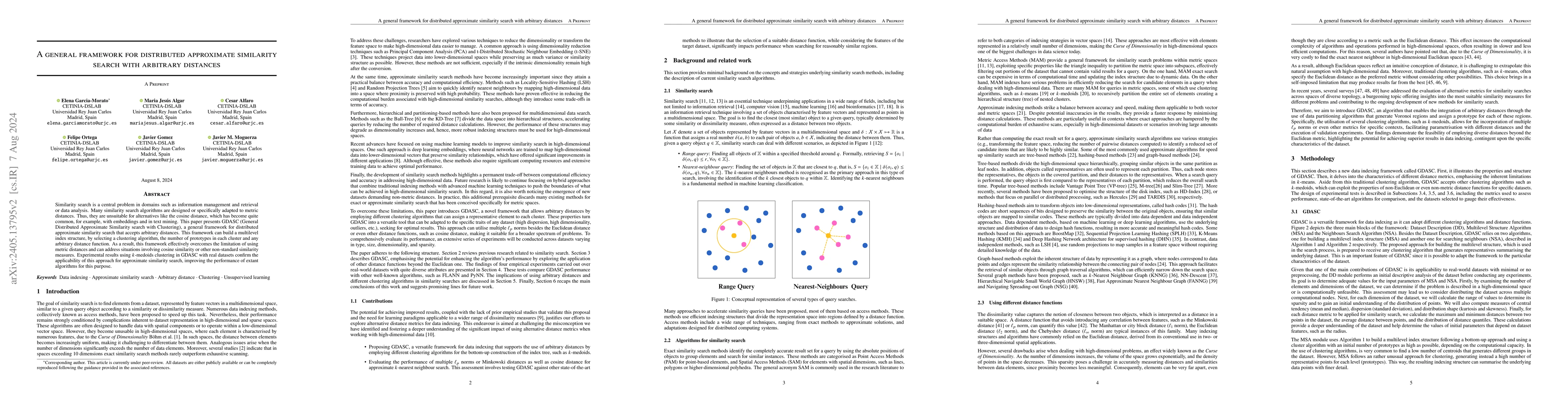This paper introduces GMASK, a distributed algorithm for approximate similarity search compatible with any arbitrary distance function using k-medoids instead of k-means. Experimental results demonstrate improved performance over alternative methods and validate the benefits of using the Minkowski distance in high-dimensional datasets.