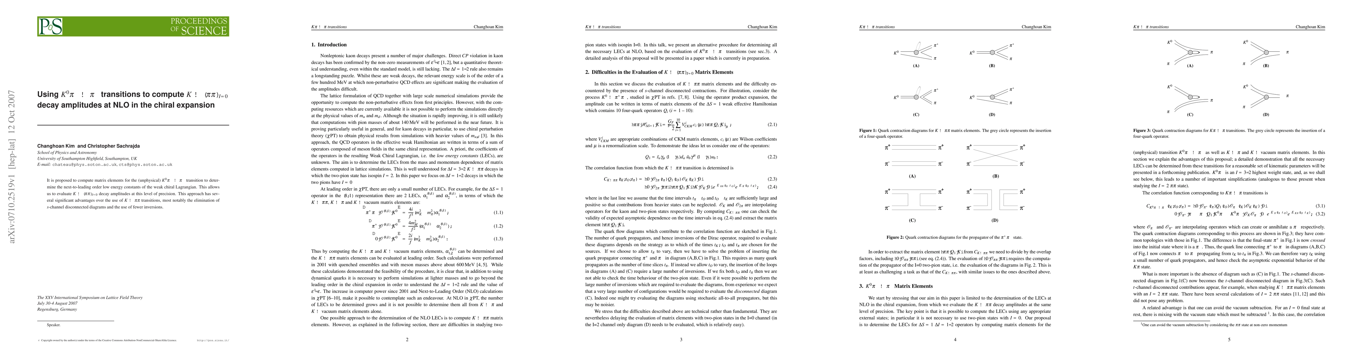 It is proposed to compute matrix elements for the (unphysical) $K^0\pi^-\to \pi^-$ transition to determine the next-to-leading order low energy constants of the weak chiral Lagrangian. This allows us to evaluate $K\to(\pi\pi)_{I=0}$ decay amplitudes at this level of precision. This approach has several significant advantages over the use of $K\to\pi\pi$ transitions, most notably the elimination of s-channel disconnected diagrams and the use of fewer inversions.