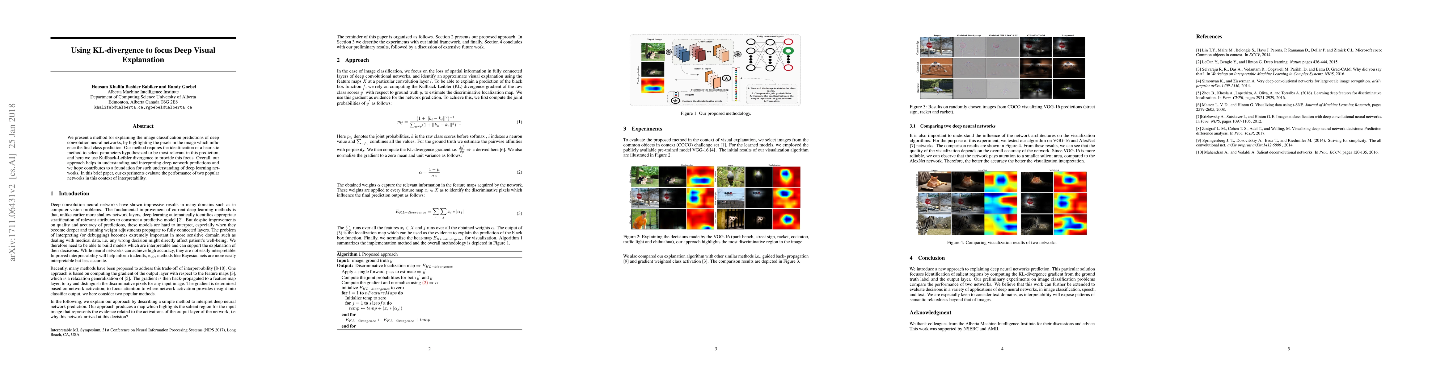 We present a method for explaining the image classification predictions of deep convolution neural networks, by highlighting the pixels in the image which influence the final class prediction. Our method requires the identification of a heuristic method to select parameters hypothesized to be most relevant in this prediction, and here we use Kullback-Leibler divergence to provide this focus. Overall, our approach helps in understanding and interpreting deep network predictions and we hope contributes to a foundation for such understanding of deep learning networks. In this brief paper, our experiments evaluate the performance of two popular networks in this context of interpretability.