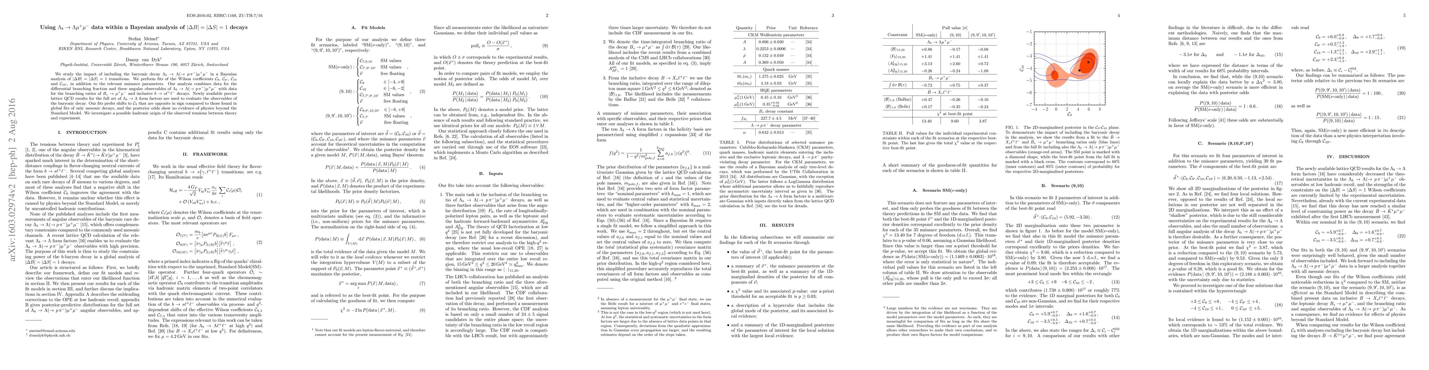 We study the impact of including the baryonic decay $\Lambda_b\to \Lambda(\to p \pi^-)\mu^+\mu^-$ in a Bayesian analysis of $|\Delta B | = |\Delta S| = 1$ transitions. We perform fits of the Wilson coefficients $C_{9}$, $C_{9'}$, $C_{10}$ and $C_{10'}$, in addition to the relevant nuisance parameters. Our analysis combines data for the differential branching fraction and three angular observables of $\Lambda_b\to \Lambda(\to p \pi^-)\mu^+\mu^-$ with data for the branching ratios of $B_s \to \mu^+\mu^-$ and inclusive $b \to s\ell^+\ell^-$ decays. Newly available precise lattice QCD results for the full set of $\Lambda_b \to \Lambda$ form factors are used to evaluate the observables of the baryonic decay. Our fits prefer shifts to $C_{9}$ that are opposite in sign compared to those found in global fits of only mesonic decays, and the posterior odds show no evidence of physics beyond the Standard Model. We investigate a possible hadronic origin of the observed tensions between theory and experiment.