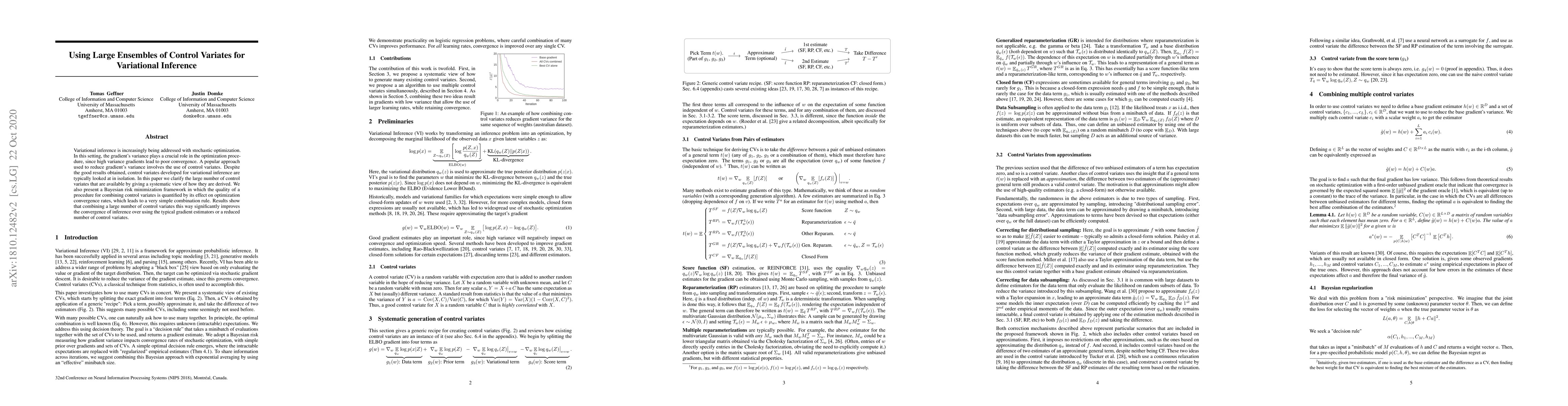 This paper systematically explores the use of large ensembles of control variates to enhance variational inference through stochastic optimization. It introduces a Bayesian risk minimization framework to quantify the effectiveness of combining control variates, demonstrating that using many control variates together significantly improves convergence rates compared to traditional methods.