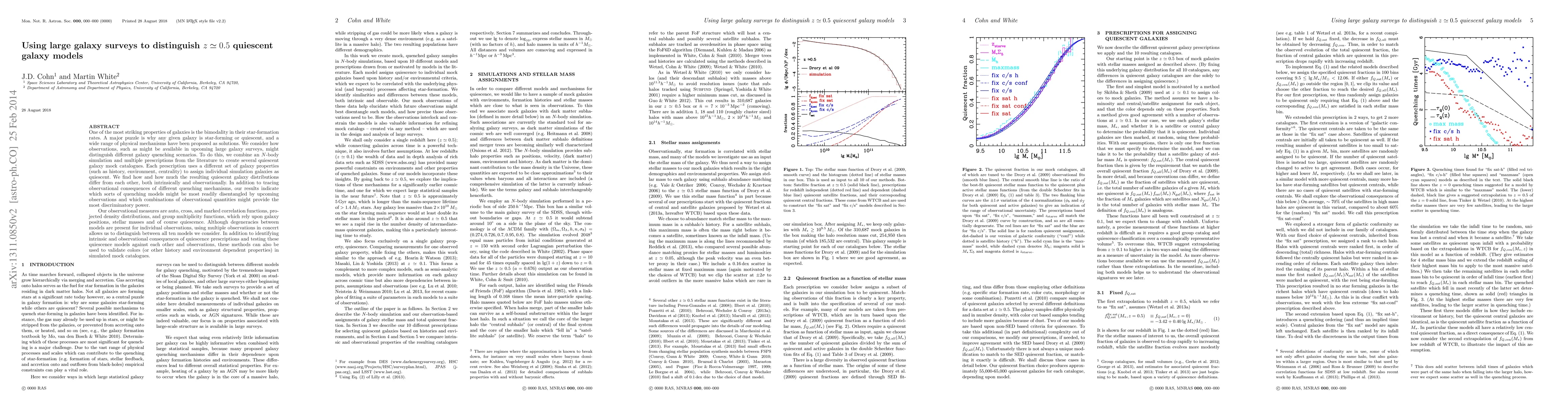 One of the most striking properties of galaxies is the bimodality in their star-formation rates. A major puzzle is why any given galaxy is star-forming or quiescent, and a wide range of physical mechanisms have been proposed as solutions. We consider how observations, such as might be available in upcoming large galaxy surveys, might distinguish different galaxy quenching scenarios. To do this, we combine an N-body simulation and multiple prescriptions from the literature to create several quiescent galaxy mock catalogues. Each prescription uses a different set of galaxy properties (such as history, environment, centrality) to assign individual simulation galaxies as quiescent. We find how and how much the resulting quiescent galaxy distributions differ from each other, both intrinsically and observationally. In addition to tracing observational consequences of different quenching mechanisms, our results indicate which sorts of quenching models might be most readily disentangled by upcoming observations and which combinations of observational quantities might provide the most discriminatory power. Our observational measures are auto, cross, and marked correlation functions, pro- jected density distributions, and group multiplicity functions, which rely upon galaxy positions, stellar masses and of course quiescence. Although degeneracies between models are present for individual observations, using multiple observations in concert allows us to distinguish between all ten models we consider. In addition to identifying intrinsic and observational consequences of quiescence prescriptions and testing these quiescence models against each other and observations, these methods can also be used to validate colors (or other history and environment dependent properties) in simulated mock catalogues.