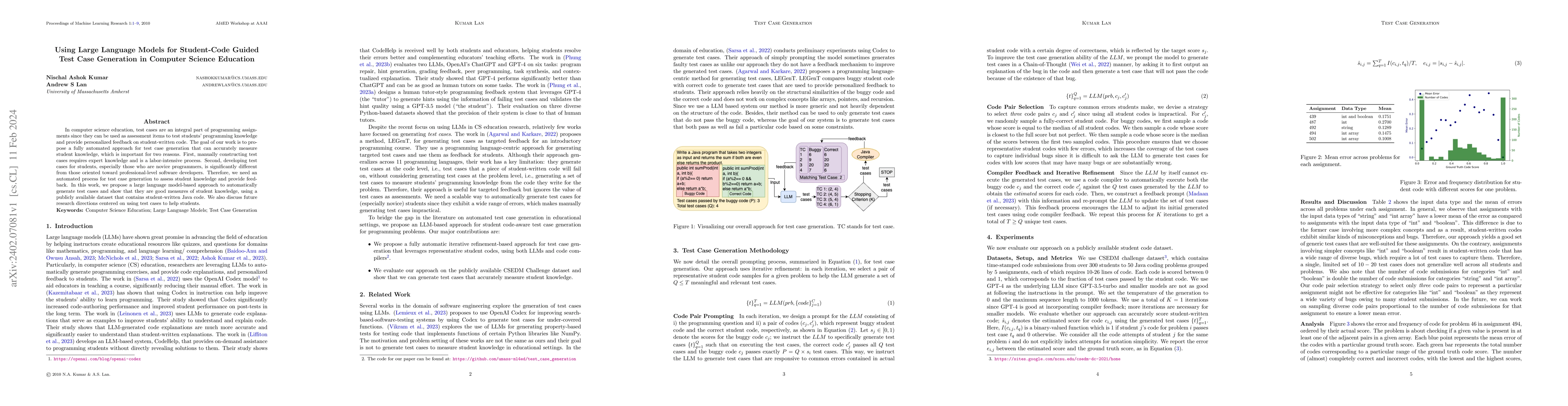 This paper proposes a large language model-based approach for automatically generating test cases to assess student programming knowledge in computer science education. The method aims to alleviate the labor-intensive process of manual test case creation and provide personalized feedback for novice programmers.