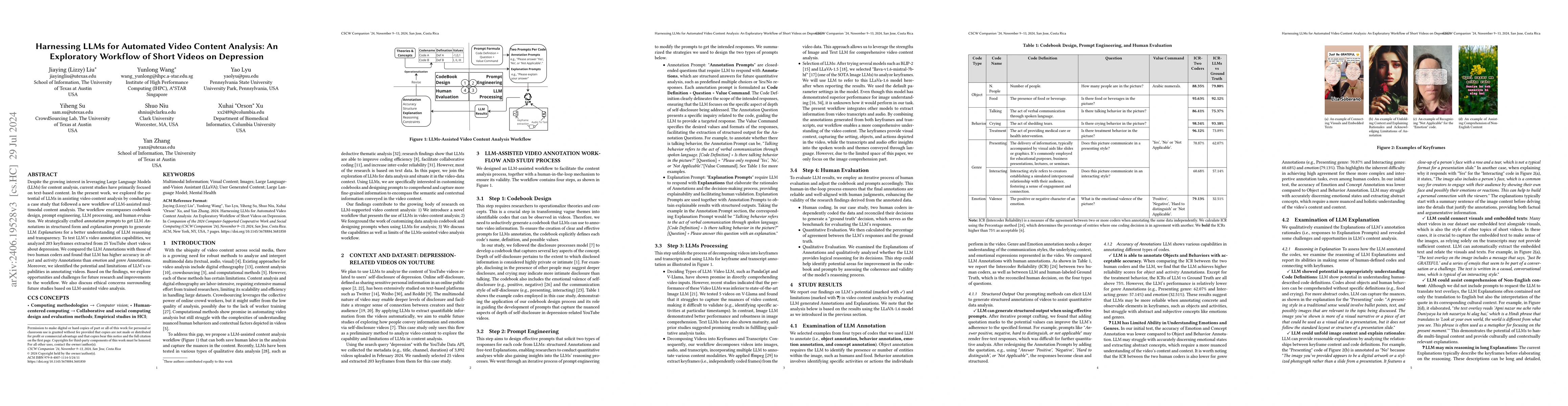 This study explores the application of Large Language Models (LLMs) for analyzing short video content related to depression, identifying LLM's strengths in object and activity annotations over emotion and genre annotations. The study highlights opportunities for improving LLM-assisted multimodal content analysis workflows while raising ethical concerns for future research.