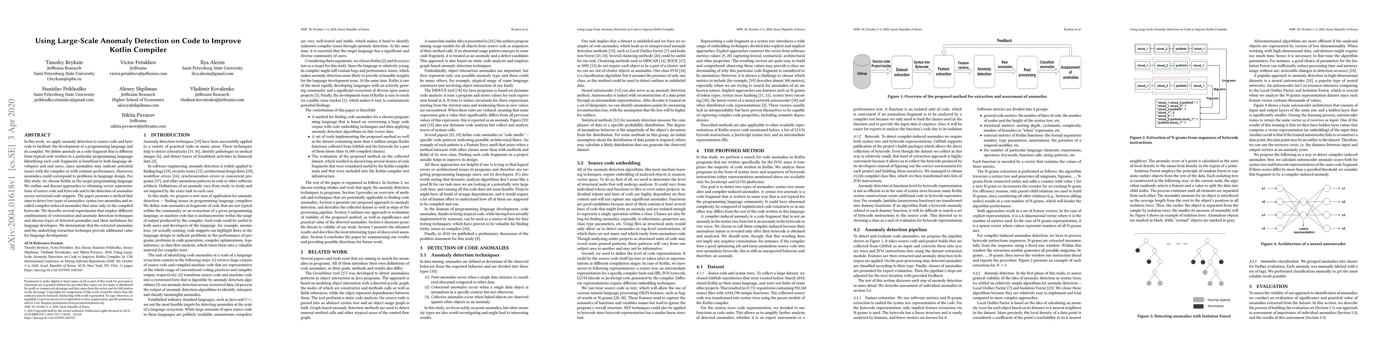 In this work, we apply anomaly detection to source code and bytecode to facilitate the development of a programming language and its compiler. We define anomaly as a code fragment that is different from typical code written in a particular programming language. Identifying such code fragments is beneficial to both language developers and end users, since anomalies may indicate potential issues with the compiler or with runtime performance. Moreover, anomalies could correspond to problems in language design. For this study, we choose Kotlin as the target programming language. We outline and discuss approaches to obtaining vector representations of source code and bytecode and to the detection of anomalies across vectorized code snippets. The paper presents a method that aims to detect two types of anomalies: syntax tree anomalies and so-called compiler-induced anomalies that arise only in the compiled bytecode. We describe several experiments that employ different combinations of vectorization and anomaly detection techniques and discuss types of detected anomalies and their usefulness for language developers. We demonstrate that the extracted anomalies and the underlying extraction technique provide additional value for language development.