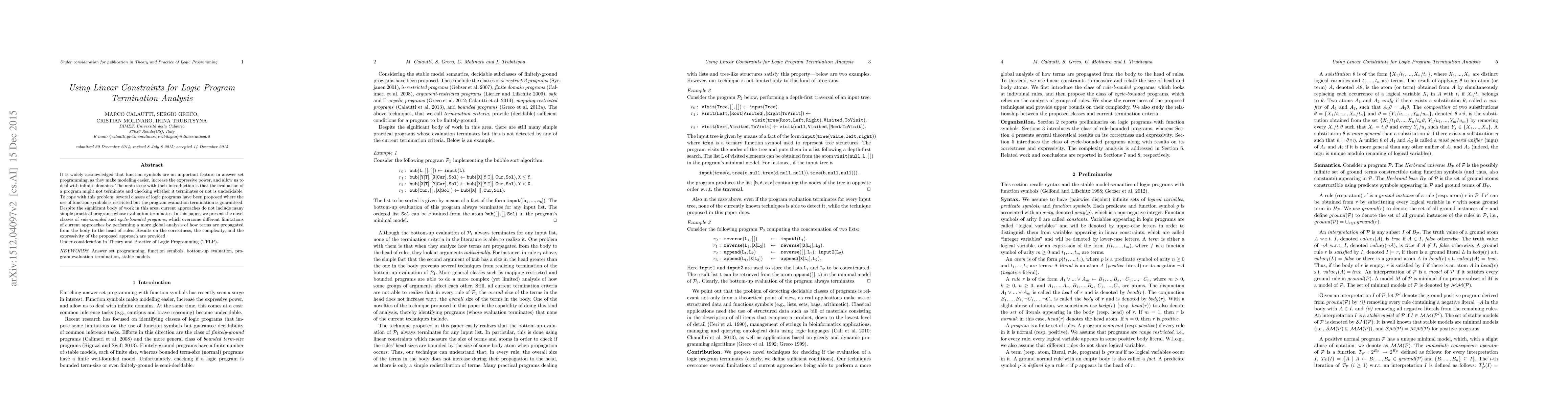 It is widely acknowledged that function symbols are an important feature in answer set programming, as they make modeling easier, increase the expressive power, and allow us to deal with infinite domains. The main issue with their introduction is that the evaluation of a program might not terminate and checking whether it terminates or not is undecidable. To cope with this problem, several classes of logic programs have been proposed where the use of function symbols is restricted but the program evaluation termination is guaranteed. Despite the significant body of work in this area, current approaches do not include many simple practical programs whose evaluation terminates. In this paper, we present the novel classes of rule-bounded and cycle-bounded programs, which overcome different limitations of current approaches by performing a more global analysis of how terms are propagated from the body to the head of rules. Results on the correctness, the complexity, and the expressivity of the proposed approach are provided.