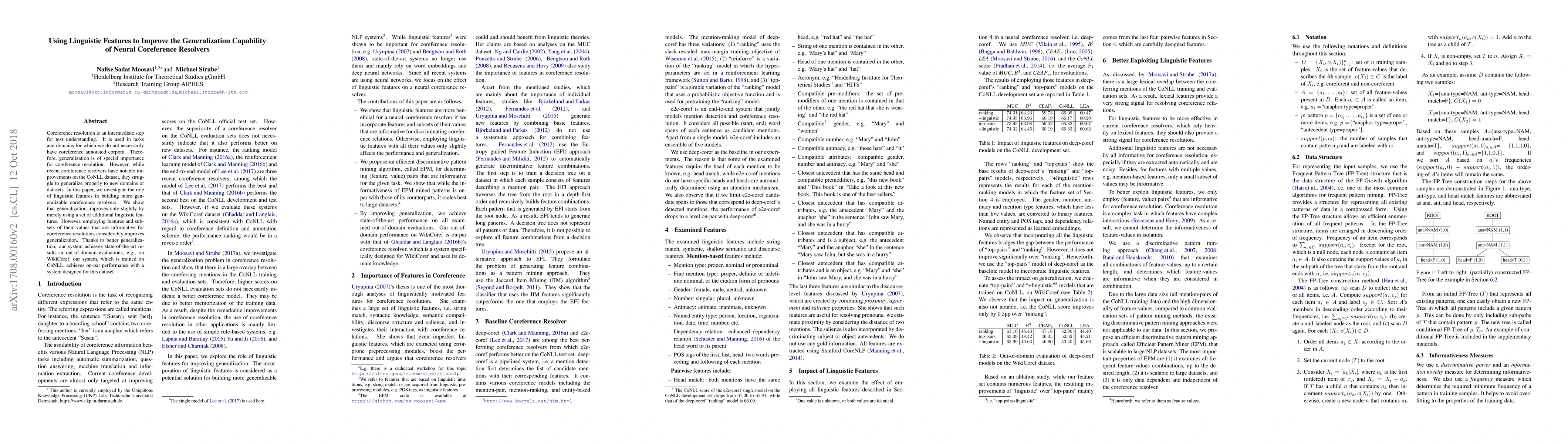 This paper explores how linguistic features can enhance the generalization capability of neural coreference resolvers, finding that targeted, informative features significantly improve performance on new datasets, achieving state-of-the-art results in out-of-domain evaluations.