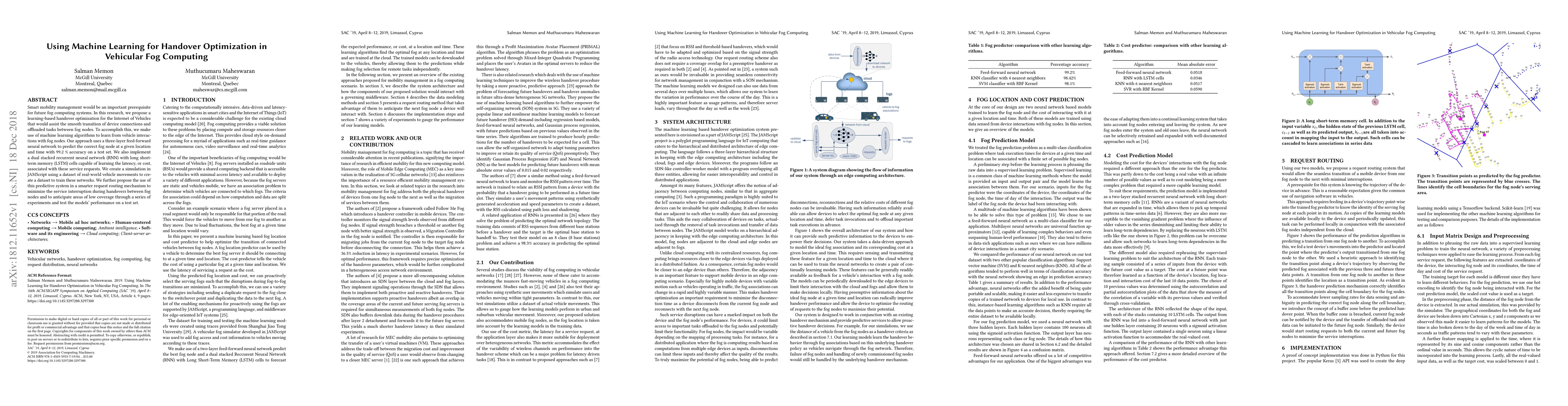 A machine learning-based system optimizes handover transitions between fog nodes for internet of vehicles, achieving 99.2% accuracy, and suggests its use in minimizing service interruption and anticipating low coverage areas.