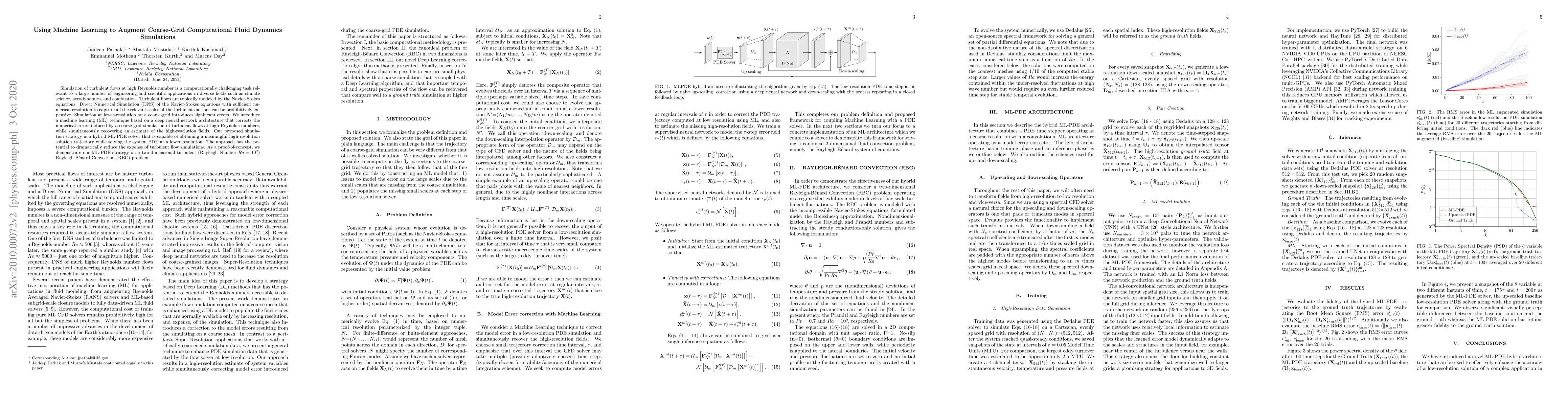 This paper proposes a machine learning technique using deep neural networks to enhance coarse-grid computational fluid dynamics simulations of turbulent flows, aiming to reduce computational costs while maintaining accuracy. The hybrid ML-PDE solver demonstrates significant potential in reducing the expense of high-Reynolds number simulations, as shown through a two-dimensional Rayleigh-Bénard convection case.