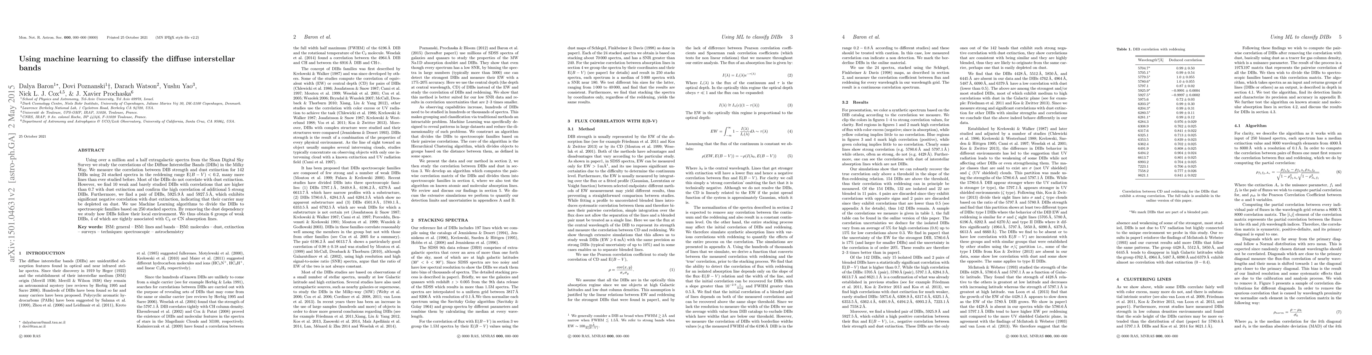 Researchers used machine learning to study correlations between Diffuse Interstellar Bands (DIBs) in the Milky Way and dust extinction, finding 10 weak DIBs that strongly correlate with dust.