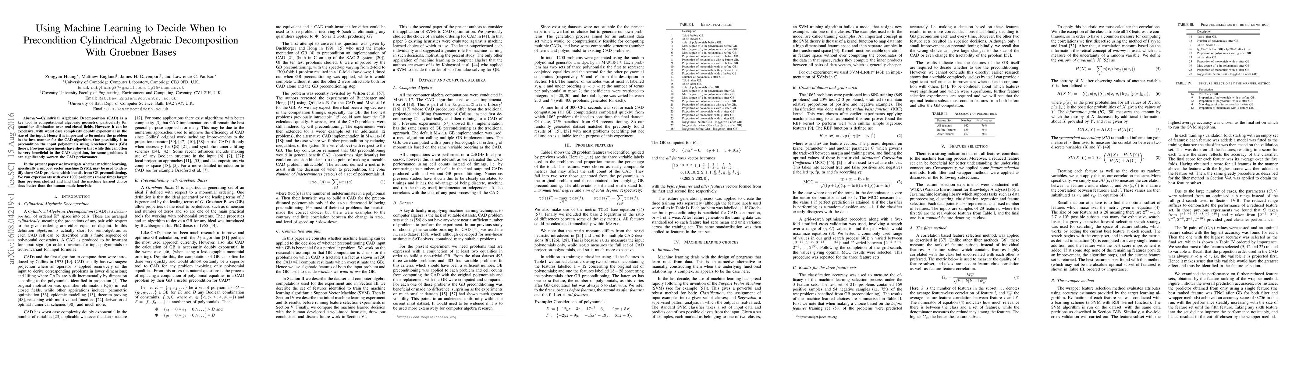 This research explores using machine learning, specifically Support Vector Machines (SVM), to determine when preconditioning Cylindrical Algebraic Decomposition (CAD) with Groebner Bases is advantageous. Testing over 1000 problems, the machine learning approach outperforms existing human-made heuristics, showing promise in optimizing CAD performance.